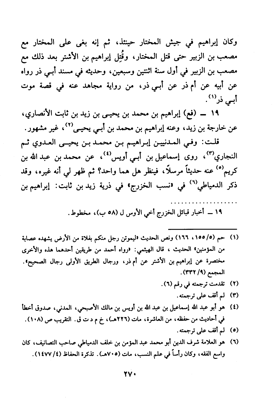 19 - فع إِبْرَاهِيم بن مُحَمَّد بن يحيى بن زيد بن ثَابت الْأنْصَارِيّ عَن خَارِجَة بن زيد وَعنهُ إِبْرَاهِيم بن مُحَمَّد بن أبي يحيى غير مَشْهُور قلت وَفِي الْمَدَنِيين إِبْرَاهِيم بن مُحَمَّد بن يحيى الْعَدوي ثمَّ البُخَارِيّ روى إِسْمَاعِيل أبي أويس عَن مُحَمَّد بن عبد الله بن كريم عَنهُ فَذكر حَدِيثا مُرْسلا فَينْظر هَل هما وَاحِد ثمَّ ظهر لي انه غَيره وَقد ذكر الدمياطي فِي نسب الْخَزْرَج فِي ذُرِّيَّة زيد بن ثَابت إِبْرَاهِيم بن