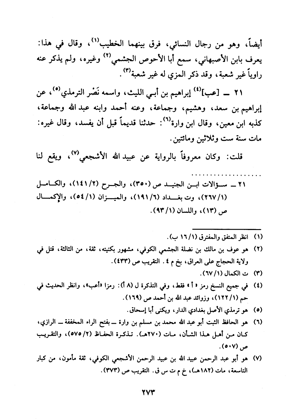 21 - عب إِبْرَاهِيم بن أبي اللَّيْث واسْمه نصر التِّرْمِذِيّ عَن إِبْرَاهِيم بن سعد وهشيم وَجَمَاعَة وَعنهُ أَحْمد وَابْنه عبد الله وَجَمَاعَة كذبه بن معِين وَقَالَ بن وارة حَدثنَا قَدِيما قبل ان يفْسد وَقَالَ غَيره مَاتَ سنة سِتّ وَثَلَاثِينَ وَمِائَتَيْنِ قلت كَانَ مَعْرُوفا بالرواية عَن عبد الله الْأَشْجَعِيّ وَيَقَع لنا