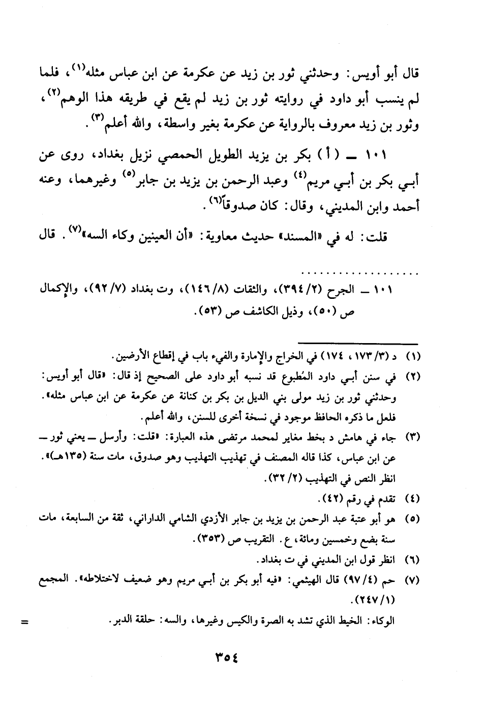 101 - ابكر بن يزِيد الطَّوِيل الْحِمصِي نزيل بَغْدَاد روى عَن أبي بكر بن أبي مَرْيَم وَعبد الرَّحْمَن بن يزِيد بن جَابر وَغَيرهمَا وَعنهُ أَحْمد وَابْن الْمَدِينِيّ وَقَالَ كَانَ صَدُوقًا قلت لَهُ فِي الْمسند حَدِيث مُعَاوِيَة ان الْعَينَيْنِ وكاء السه قَالَ