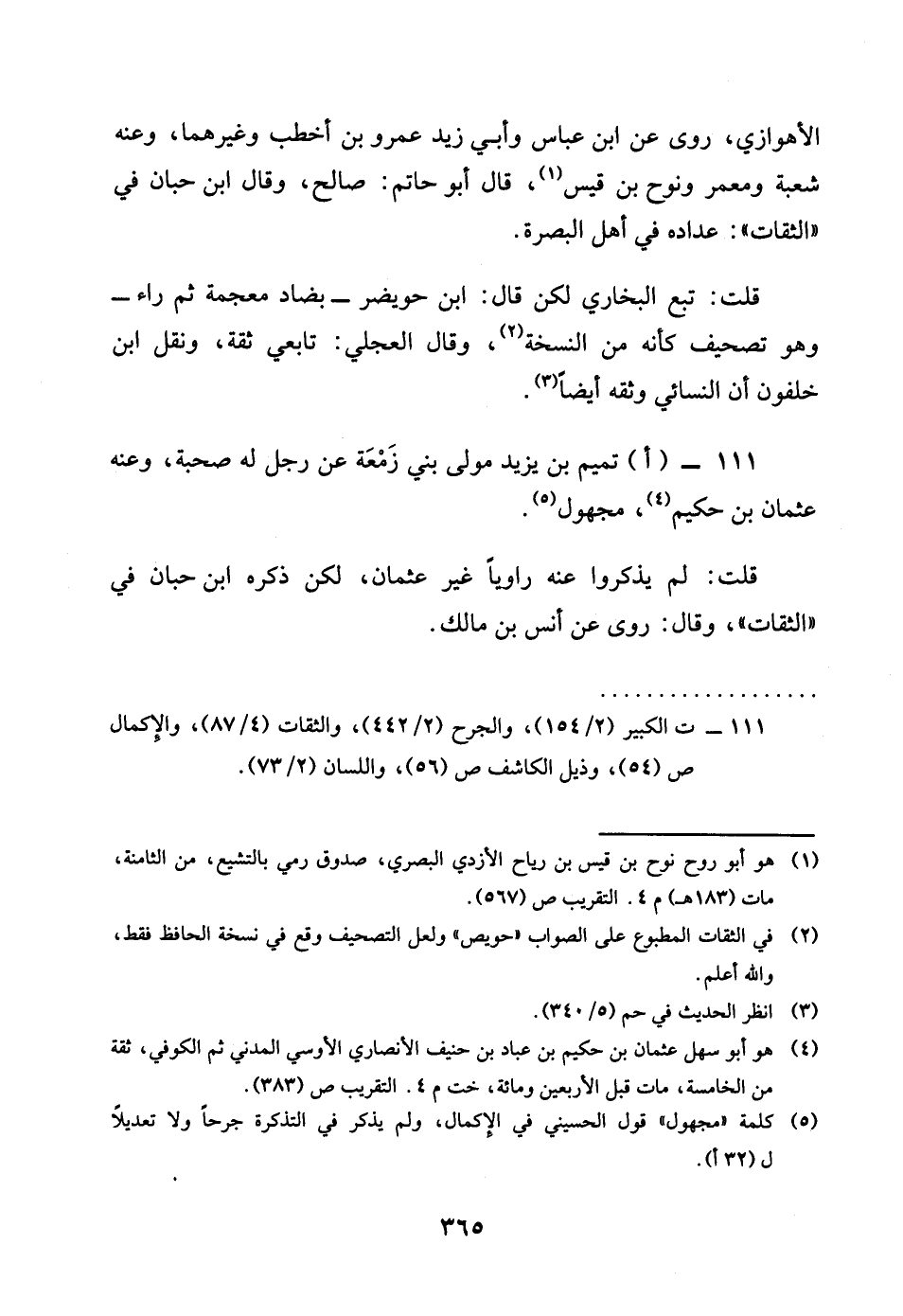 111 - اتَمِيم بن يزِيد مولى بنى زَمعَة عَن رجل لَهُ صُحْبَة وَعنهُ عُثْمَان بن حَكِيم مَجْهُول قلت لم يذكرُوا عَنهُ رَاوِيا غير عُثْمَان لَكِن ذكره بن حبَان فِي الثِّقَات وَقَالَ روى عَن أنس بن مَالك