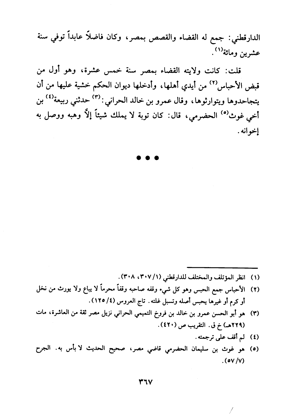 الدَّارَقُطْنِيّ جمع لَهُ الْقَضَاء والقصص بِمصْر وَكَانَ فَاضلا عابدا توفّي سنة عشْرين وَمِائَة قلت كَانَت ولَايَته الْقَضَاء بِمصْر سنة خمس عشرَة وَهُوَ أول من قبض الاحباس من أَيدي أَهلهَا وادخلها ديوَان الحكم خشيَة عَلَيْهَا من ان يتجاحدوها ويتوارثوها وَقَالَ عَمْرو بن خَالِد الْحَرَّانِي حَدثنِي ربيعَة بن أخي غوث الْحَضْرَمِيّ قَالَ كَانَ تَوْبَة لَا يملك شَيْئا الا وهبه وَوصل بِهِ إخوانه
