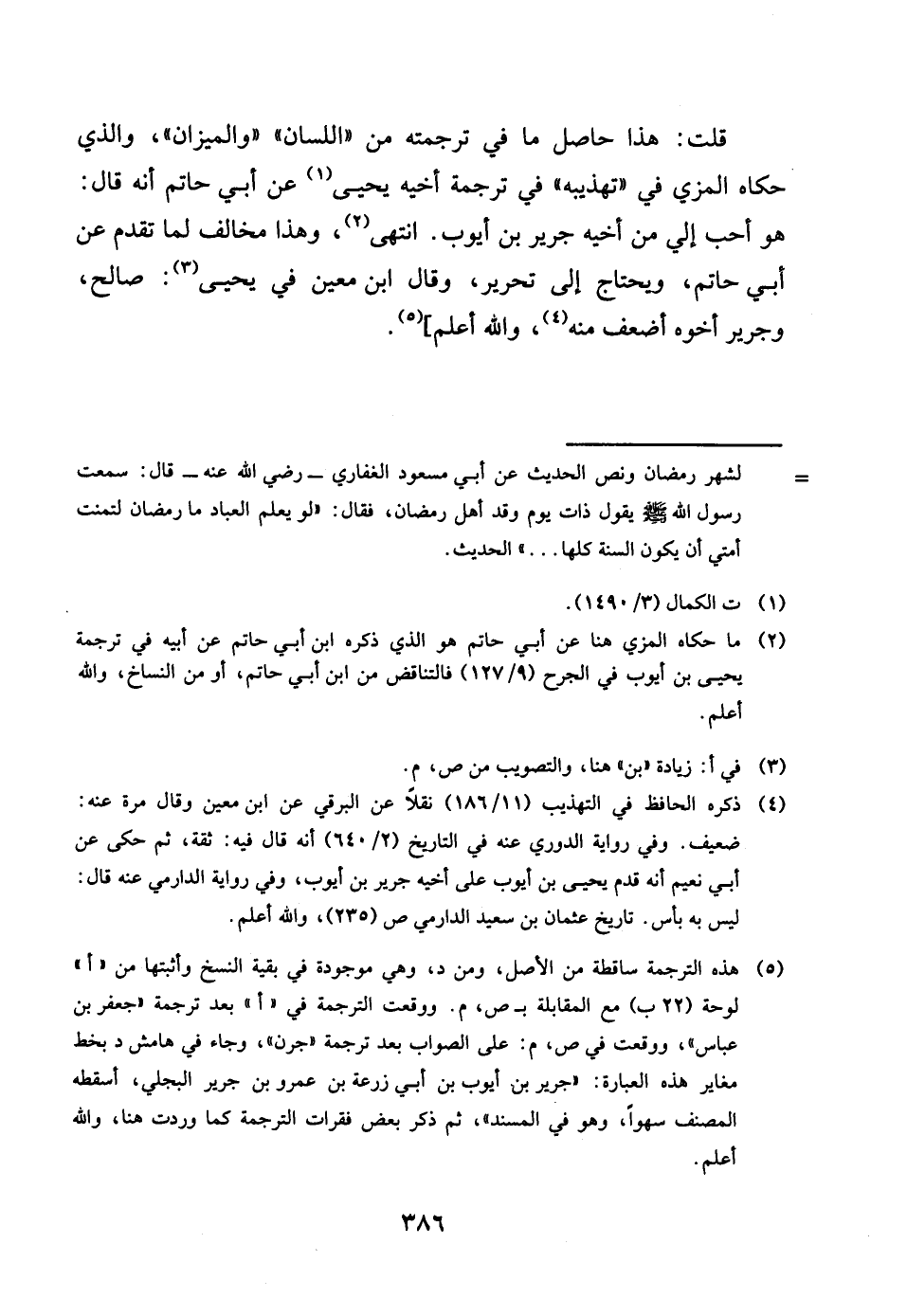 قلت هَذَا حَاصِل مَا فِي تَرْجَمته من اللِّسَان وَالْمِيزَان وَالَّذِي حَكَاهُ الْمزي فِي تهذيبه فِي تَرْجَمَة أَخِيه يحيى عَن أبي حَاتِم انه قَالَ هُوَ أحب الي من أَخِيه جرير بن أَيُّوب انْتهى وَهَذَا مُخَالف لما تقدم عَن أبي حَاتِم وَيحْتَاج الى تَحْرِير وَقَالَ بن معِين فِي يحيى صَالح وَجَرِير اخوه أَضْعَف مِنْهُ وَالله اعْلَم