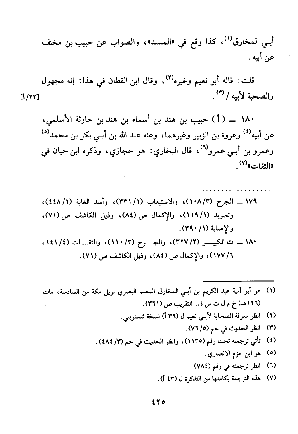 180 - احبيب بن هِنْد بن أَسمَاء بن هِنْد بن حَارِثَة الْأَسْلَمِيّ عَن أَبِيه وَعُرْوَة بن الزبير وَغَيرهمَا وَعنهُ عبد الله بن أبي بكر بن مُحَمَّد وَعَمْرو بن أبي عَمْرو وَقَالَ البُخَارِيّ هُوَ حجازي وَذكره بن حبَان فِي الثِّقَات