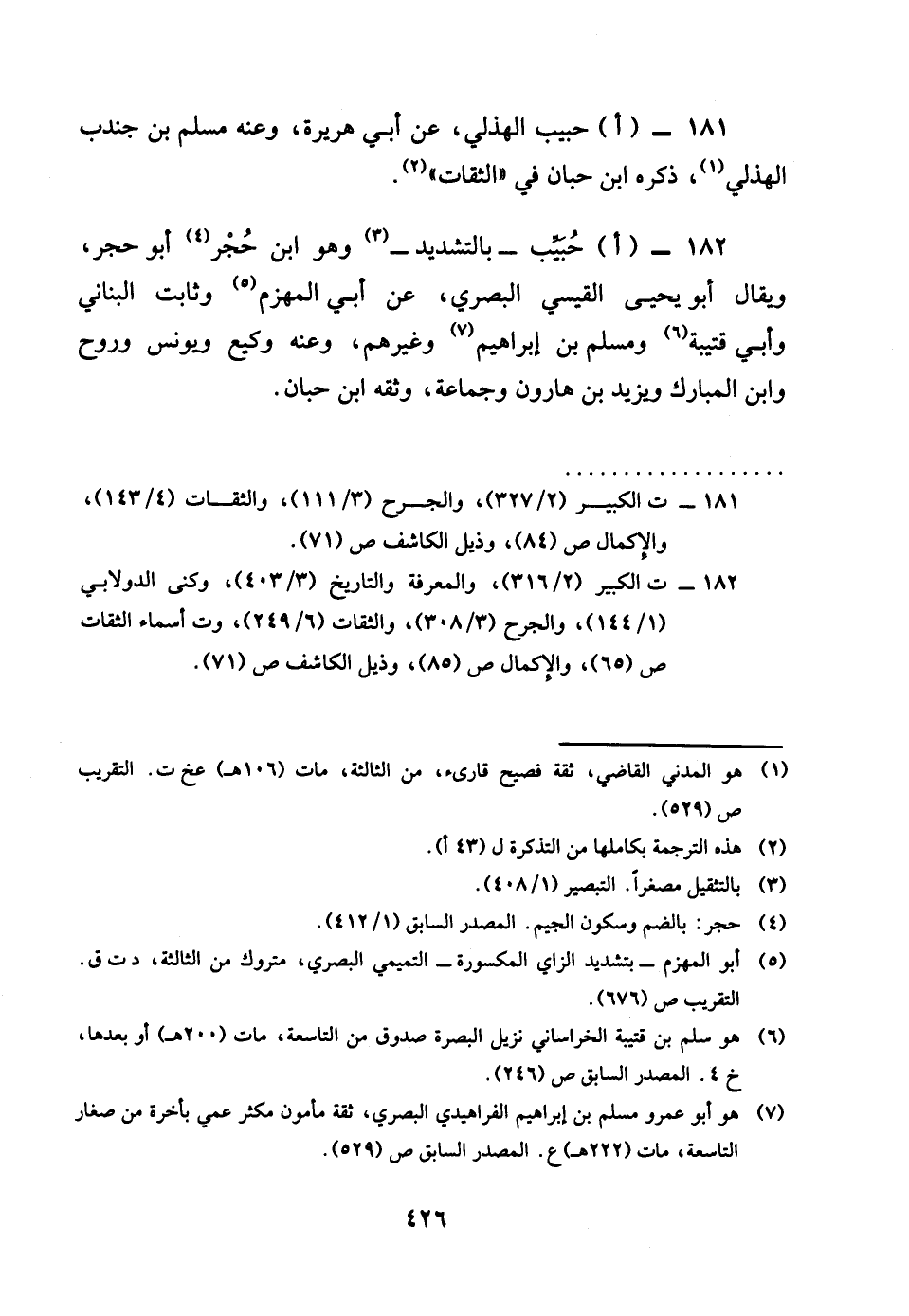 181 - احبيب الْهُذلِيّ عَن أبي هُرَيْرَة وَعنهُ مُسلم بن جُنْدُب الْهُذلِيّ ذكره بن حبَان فِي الثِّقَات