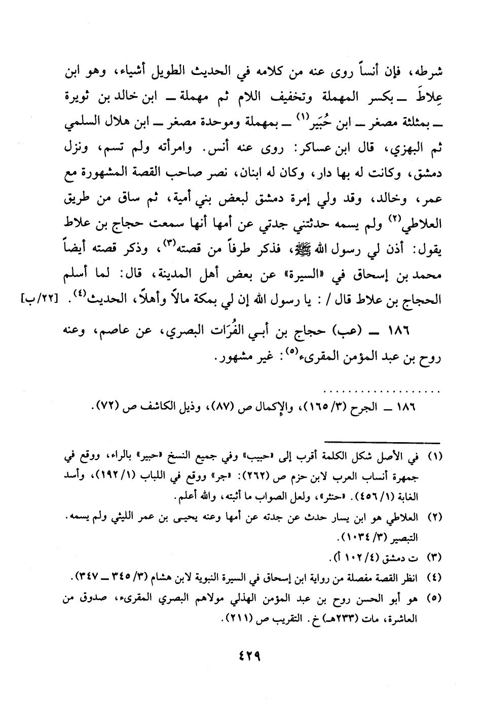 186 - عب حجاج بن أبي الْفُرَات الْبَصْرِيّ عَن عَاصِم وَعنهُ روح بن عبد الْمُؤمن الْمقري غير مَشْهُور