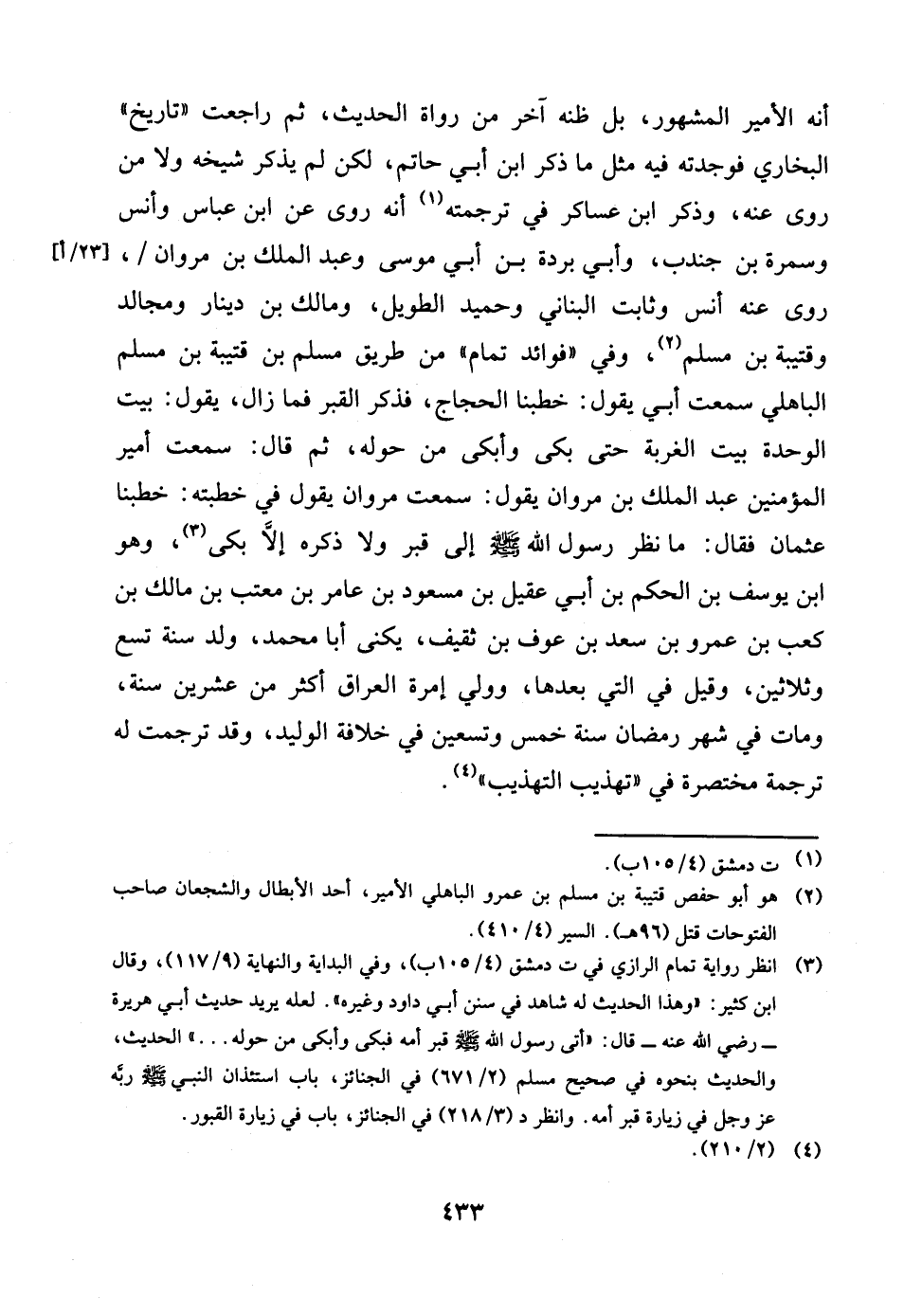 انه الْأَمِير الْمَشْهُور بل ظَنّه آخر من رُوَاة الحَدِيث ثمَّ راجعت تَارِيخ البُخَارِيّ فَوَجَدته فِيهِ مثل مَا ذكر بن أبي حَاتِم لَكِن لم يذكر شَيْخه وَلَا من روى عَنهُ وَذكره بن عَسَاكِر فِي تَرْجَمته انه روى عَن بن عَبَّاس وَأنس وَسمرَة بن جُنْدُب وَأبي بردة بن أبي مُوسَى وَعبد الْملك بن مَرْوَان روى عَنهُ أنس وثابت الْبنانِيّ وَحميد الطَّوِيل وَمَالك بن دِينَار ومجالد وقتيبة بن مُسلم وَفِي فَوَائِد تَمام من طَرِيق مُسلم بن قُتَيْبَة بن مُسلم الْبَاهِلِيّ سَمِعت أبي يَقُول خَطَبنَا الْحجَّاج فَذكر الْقَبْر فَمَا زَالَ يَقُول بَيت الْوحدَة بَيت الغربة حَتَّى بَكَى وأبكى من حوله ثمَّ قَالَ سَمِعت أَمِير الْمُؤمنِينَ عبد الْملك بن مَرْوَان يَقُول سَمِعت مَرْوَان يَقُول فِي خطبَته خَطَبنَا عُثْمَان فَقَالَ مَا نظر رَسُول الله صلى الله عَلَيْهِ وَسلم الى قبر وَلَا ذكره الا بكي وَهُوَ بن يُوسُف بن الحكم بن أبي عقيل بن مَسْعُود بن عَامر بن معتب بن مَالك بن كَعْب بن عَمْرو بن سعد بن عَوْف بن ثَقِيف يكنى أَبَا مُحَمَّد ولد سنة تسع وَثَلَاثِينَ وَقيل فِي الَّتِي بعْدهَا وَولي إمرة الْعرَاق أَكثر من عشْرين سنة وَمَات فِي شهر رَمَضَان سنة خمس وَتِسْعين فِي خلَافَة الْوَلِيد وَقد ترجمت لَهُ تَرْجَمَة مختصرة فِي تَهْذِيب التَّهْذِيب