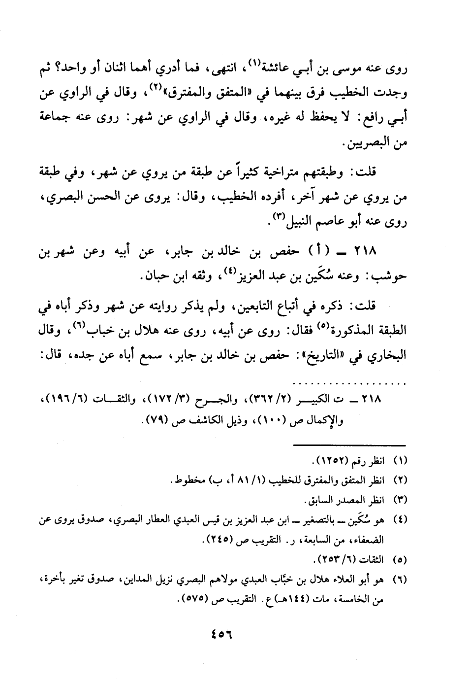 218- احَفْص بن خَالِد بن جَابر عَن أَبِيه وَعَن شهر بن حَوْشَب وَعنهُ سكين بن عبد الْعَزِيز وَثَّقَهُ بن حبَان قلت ذكره فِي اتِّبَاع التَّابِعين وَلم يذكر رِوَايَته عَن شهر وَذكر أَبَاهُ فِي الطَّبَقَة الْمَذْكُورَة فَقَالَ روى عَن أَبِيه روى عَنهُ هِلَال بن خباب وَقَالَ البُخَارِيّ فِي التَّارِيخ حَفْص بن خَالِد بن جَابر سمع أَبَاهُ عَن جده قَالَ