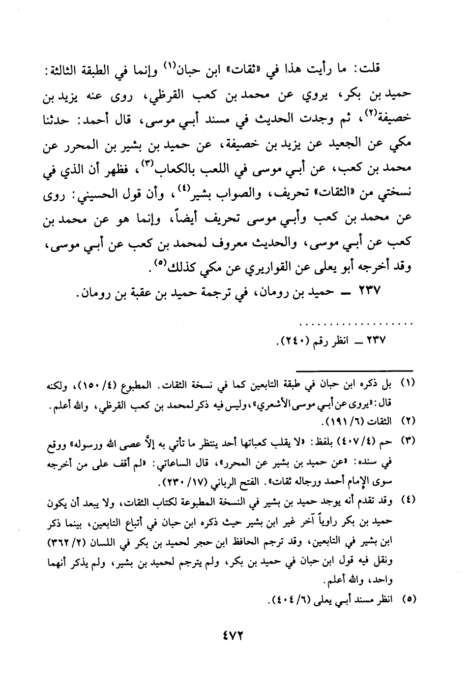 238 -حميد بن رُومَان فِي تَرْجَمَة حميد بن عقبَة بن رُومَان