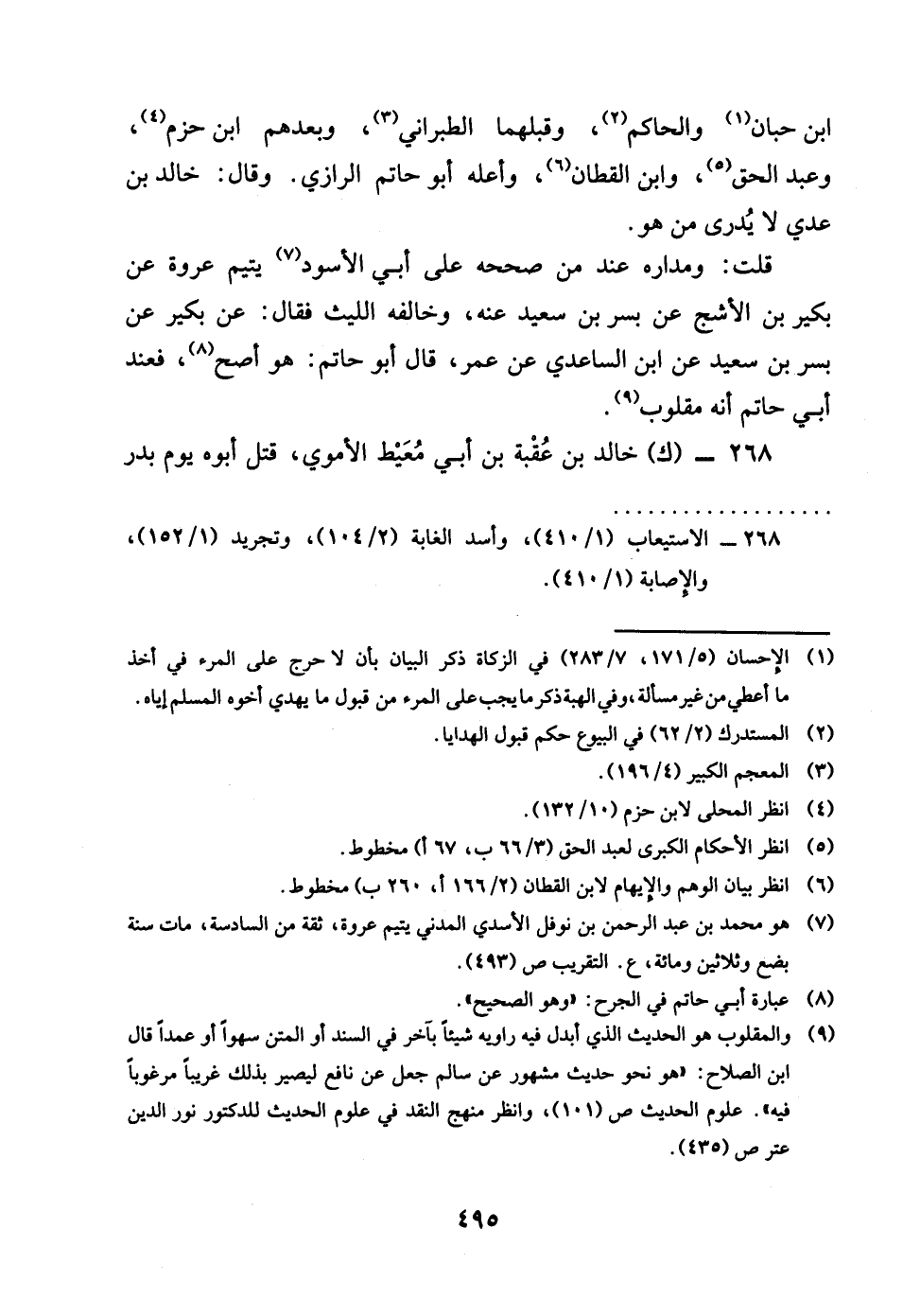 268 - ك خَالِد بن عقبَة بن أبي معيط الْأمَوِي قتل أَبوهُ يَوْم بدر