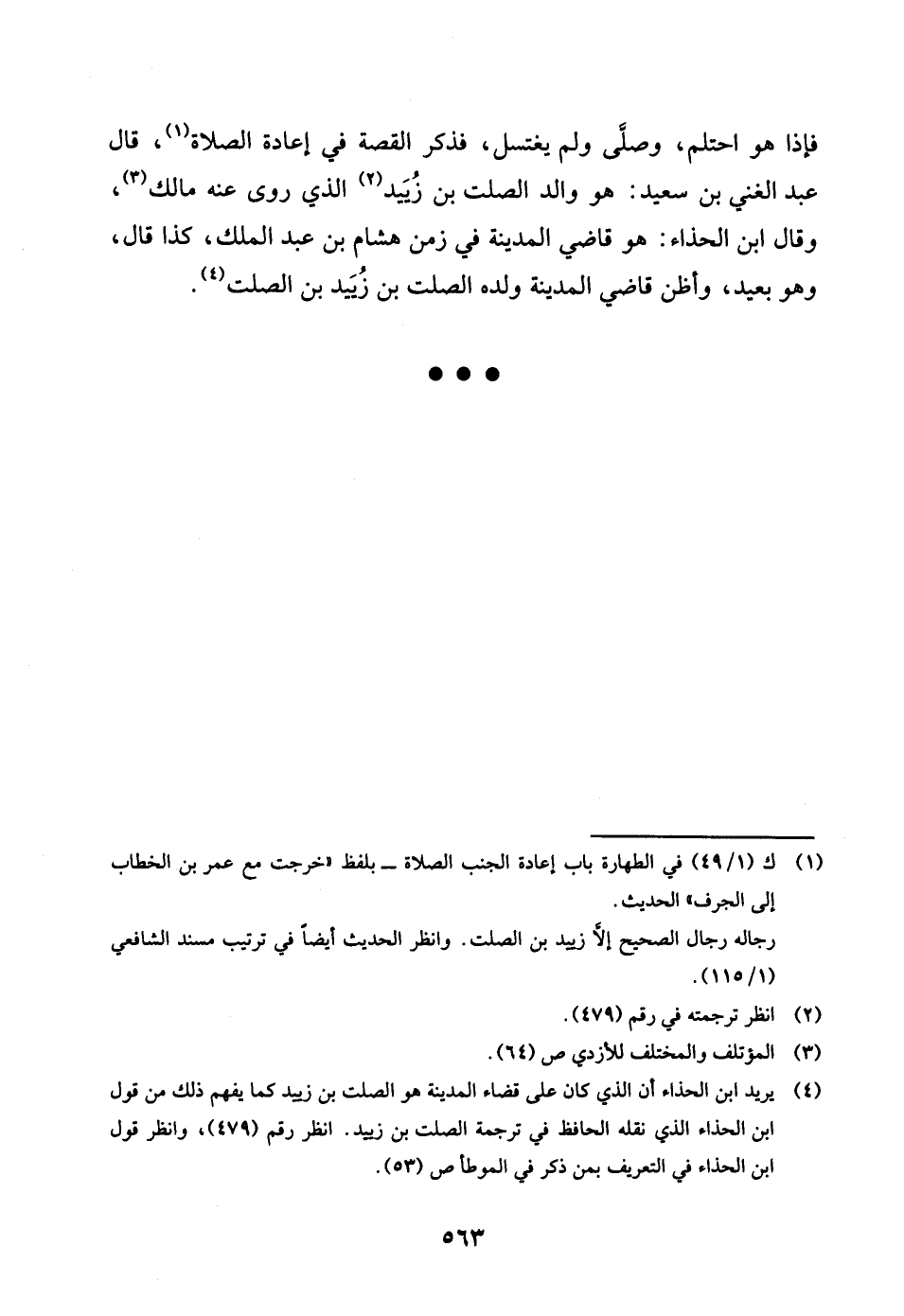 فَإِذا هُوَ احْتَلَمَ وَصلى وَلم يغْتَسل فَذكر الْقِصَّة فِي إِعَادَة الصَّلَاة قَالَ عبد الْغَنِيّ بن سعيد هُوَ وَالِد الصَّلْت بن زبيد الَّذِي روى عَنهُ مَالك وَقَالَ بن الْحذاء هُوَ قَاضِي الْمَدِينَة فِي زمن هِشَام بن عبد الْملك كَذَا قَالَ وَهُوَ بعيد وأظن قَاضِي الْمَدِينَة وَلَده الصَّلْت بن زبيد بن الصَّلْت