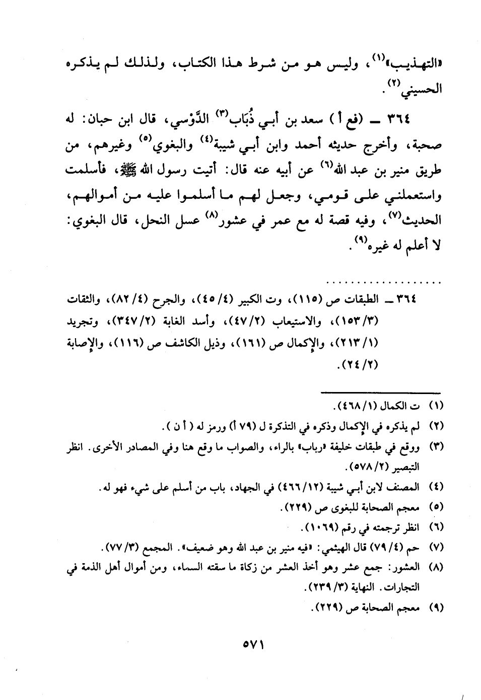 فِي التَّهْذِيب وَلَيْسَ هُوَ من شَرط هَذَا الْكتاب وَلذَلِك لم يذكرهُ الْحُسَيْنِي