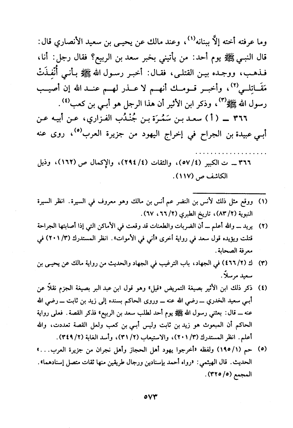 وَمَا عَرفته أُخْته الا ببنانه وَعند مَالك عَن يحيى بن سعيد الْأنْصَارِيّ قَالَ قَالَ النَّبِي صلى الله عَلَيْهِ وَسلم يَوْم أحد من ياتيني بِخَبَر سعد بن الرّبيع فَقَالَ رجل انا فَذهب فَوَجَدَهُ بَين الْقَتْلَى فَقَالَ أخبر رَسُول الله صلى الله عَلَيْهِ وَسلم بِأَنِّي أنفذت مقاتلي وَأخْبر قَوْمك إِنَّهُم لَا عذر لَهُم عِنْد الله إِن اصيب رَسُول الله صلى الله عَلَيْهِ وَسلم وَذكر بن الْأَثِير أَن هَذَا الرجل هُوَ أبي بن كَعْب