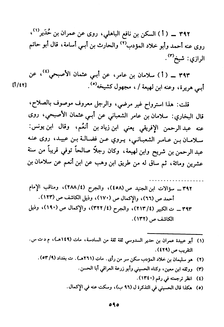 392 - االسكن بن نَافِع الْبَاهِلِيّ روى عَن عمرَان بن حدير روى عَنهُ أَبُو خَلاد الْمُؤَدب والْحَارث بن أبي أُسَامَة قَالَ أَبُو حَاتِم الرَّازِيّ شيخ