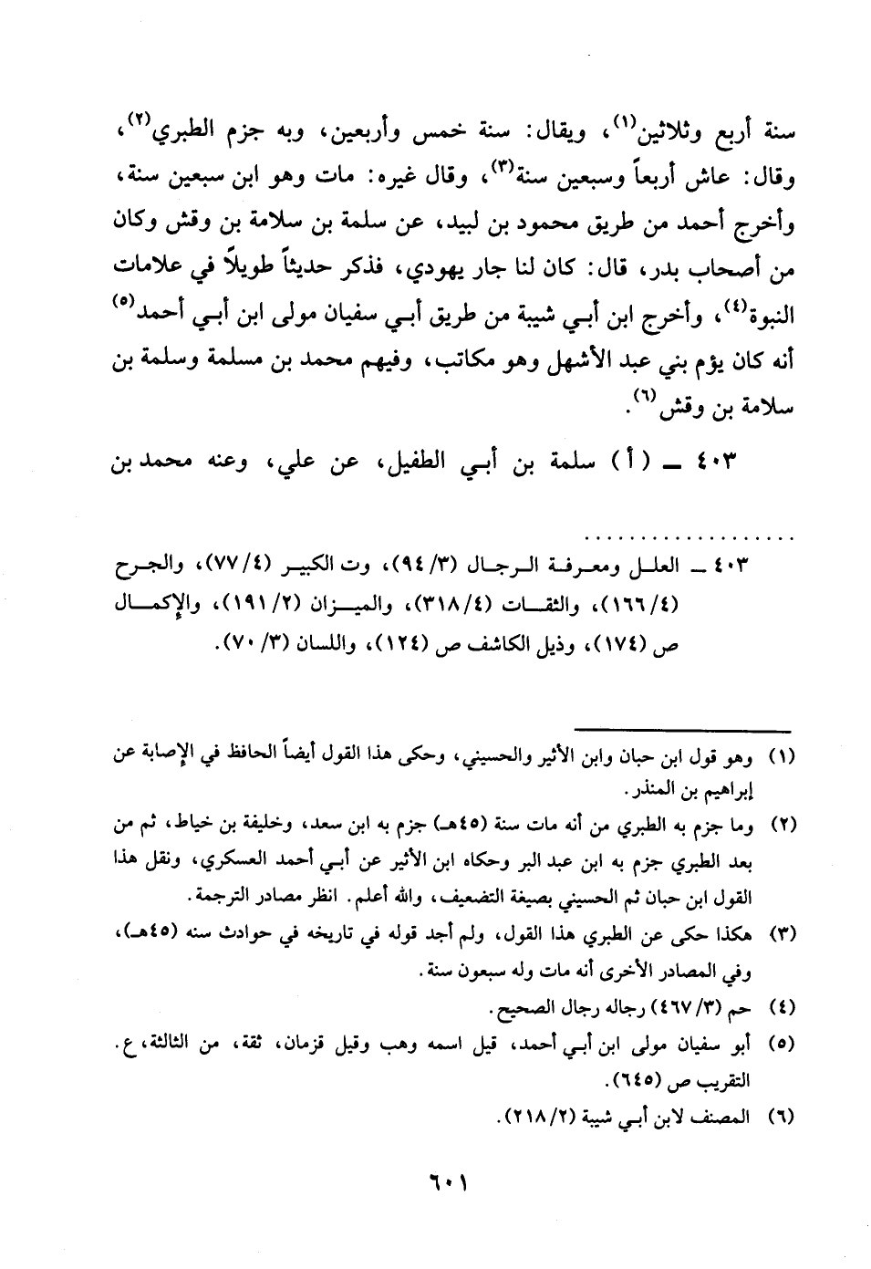 403 - اسَلمَة بن أبي الطُّفَيْل عَن عَليّ رضى الله تَعَالَى عَنهُ وَعنهُ مُحَمَّد بن