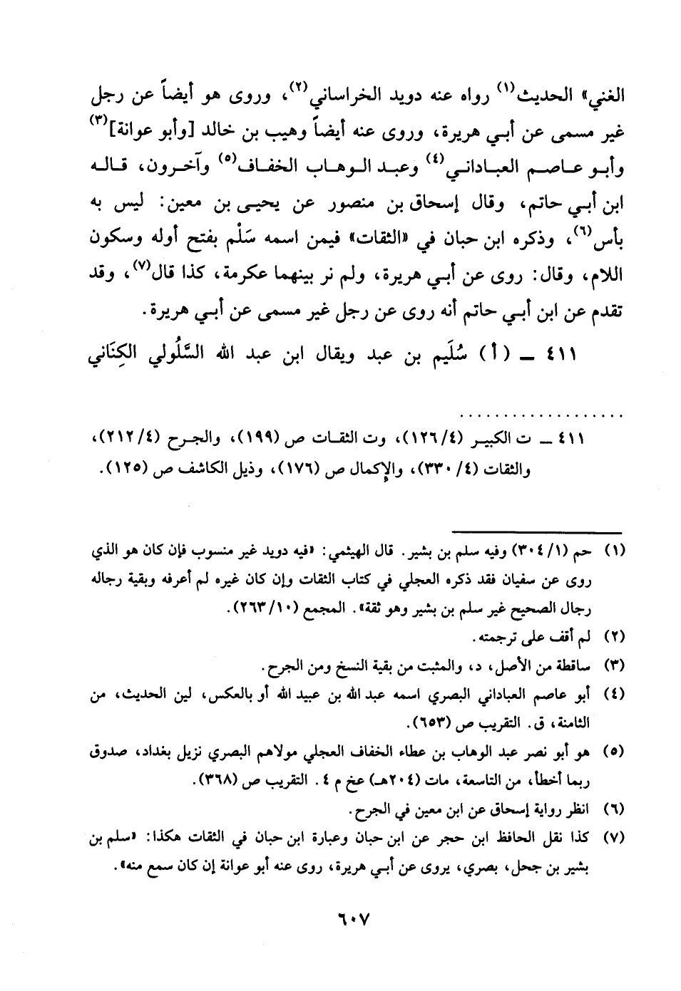 411 - اسليم بن عبد وَيُقَال بن عبد الله السَّلُولي الْكِنَانِي