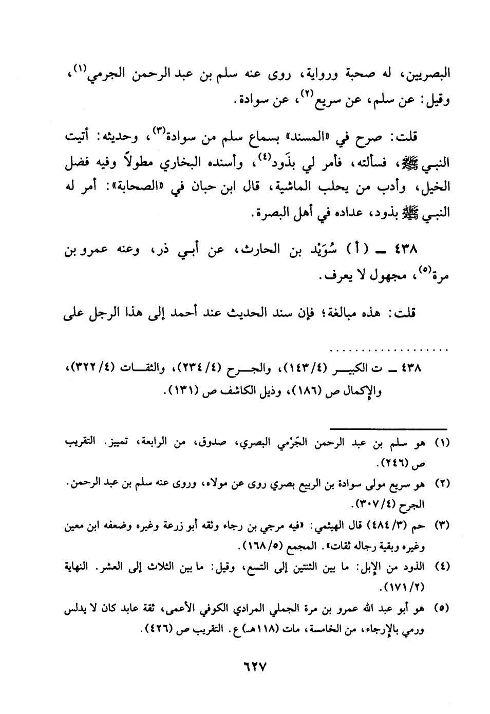 438 - اسُوَيْد بن الْحَارِث عَن أبي ذَر وَعنهُ عَمْرو بن مرّة مَجْهُول لَا يعرف قلت هَذِه مُبَالغَة فَإِن سَنَد الحَدِيث عِنْد أَحْمد إِلَى هَذَا الرجل على