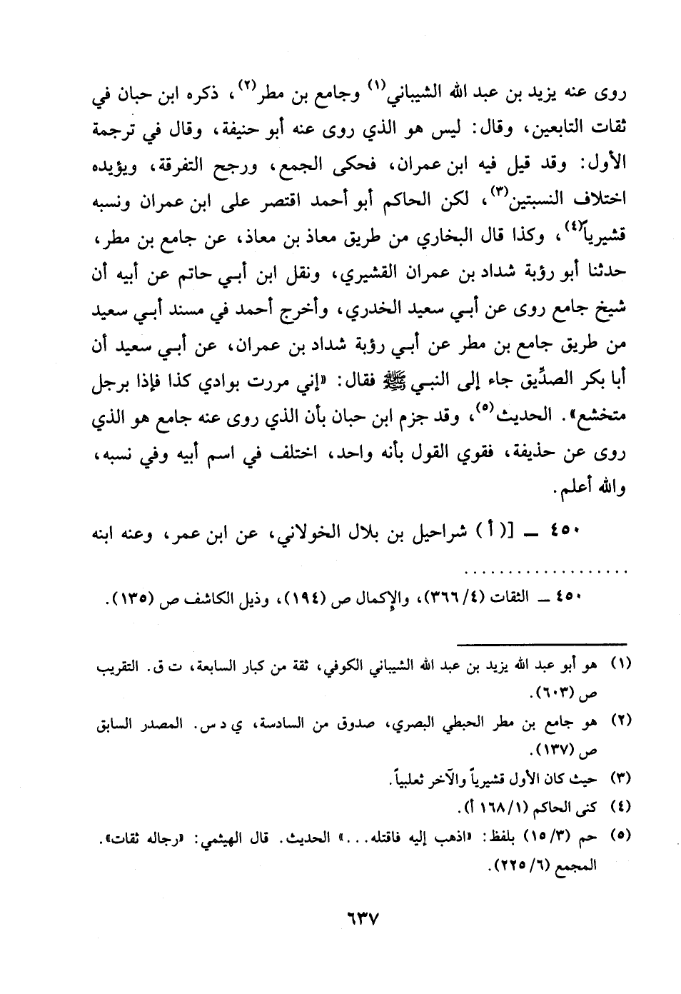 450 - اشرَاحِيل بن بِلَال الْخَولَانِيّ عَن بن عمر رضى الله تَعَالَى عَنْهُمَا وَعنهُ ابْنه