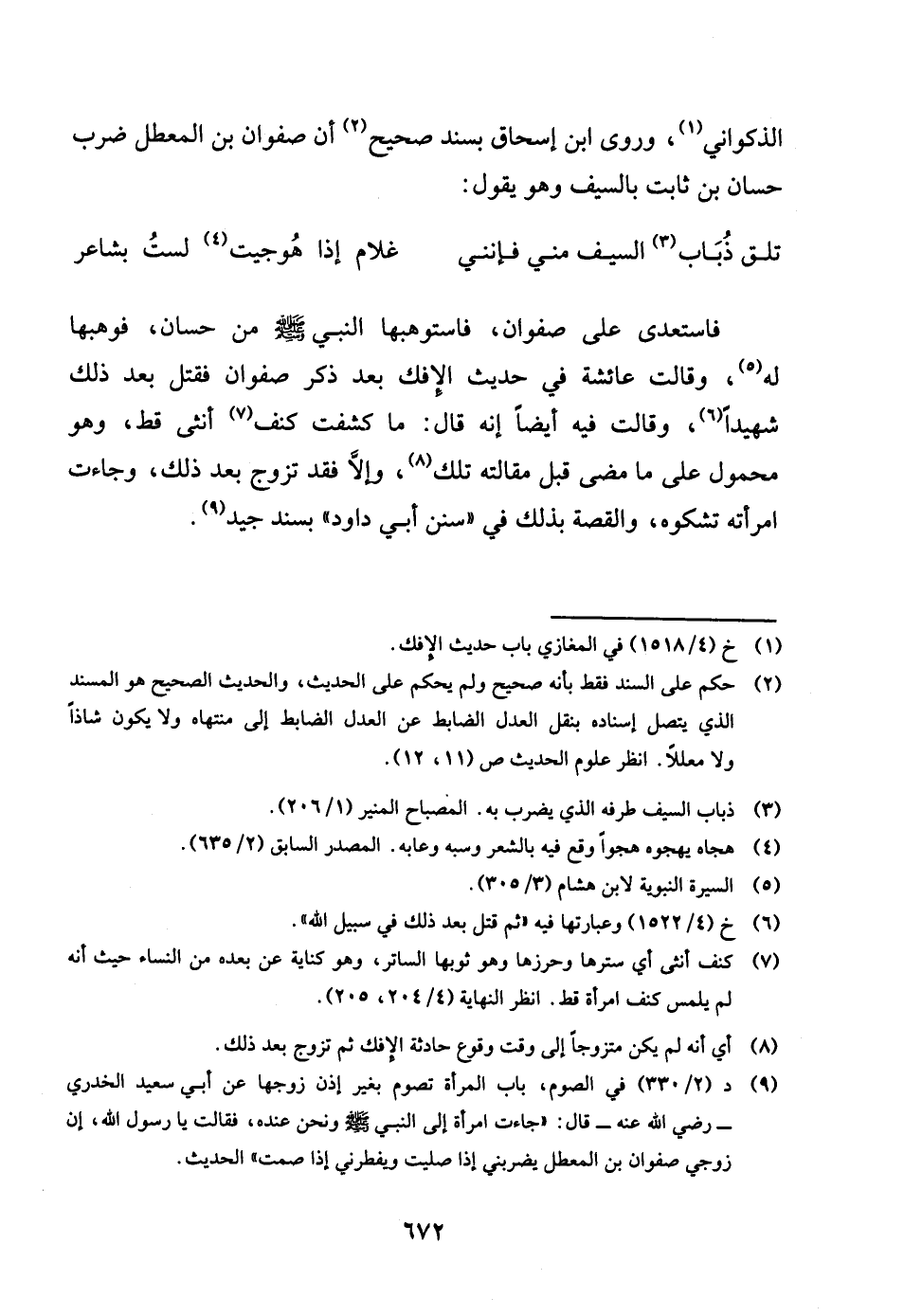 الذكواني وروى بن إِسْحَاق بِسَنَد صَحِيح أَن صَفْوَان بن الْمُعَطل ضرب حسان بن ثَابت بِالسَّيْفِ وَهُوَ يَقُول