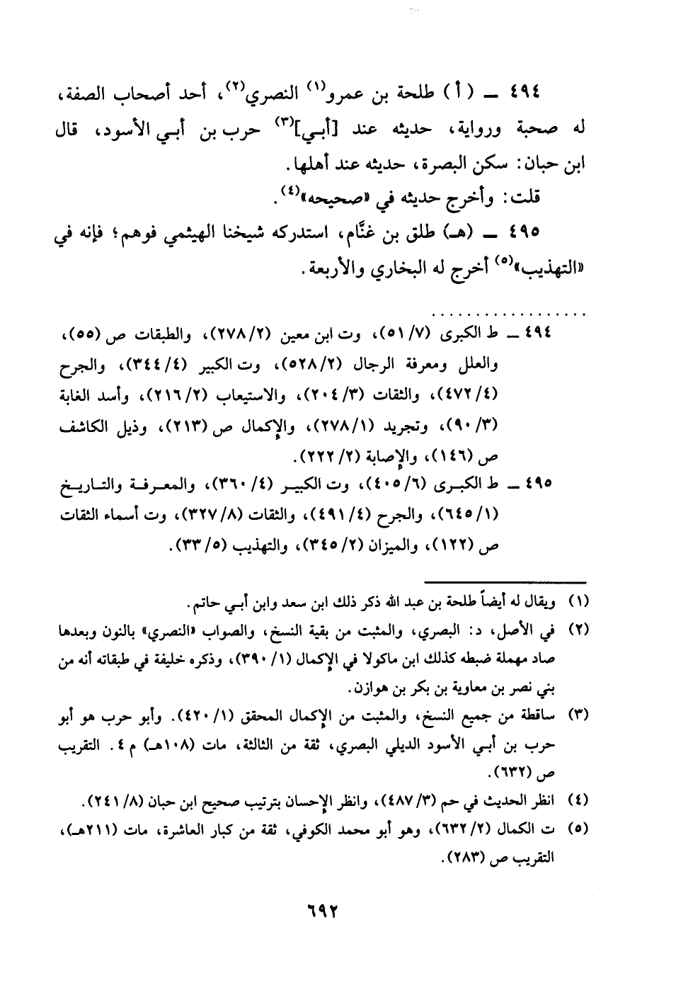 495 - هـ طلق بن غنأم استدركه شَيخنَا الهيثمي فَوَهم فَإِنَّهُ فِي التَّهْذِيب اخْرُج لَهُ البُخَارِيّ وَالْأَرْبَعَة