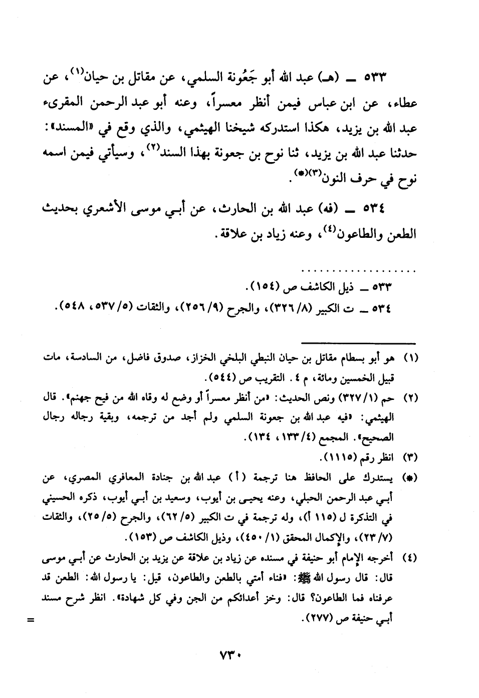 534 - فه عبد الله بن الْحَارِث عَن أبي مُوسَى الْأَشْعَرِيّ رضى الله تَعَالَى عَنهُ بِحَدِيث الطعْن والطاعون وَعنهُ زِيَاد بن علاقَة