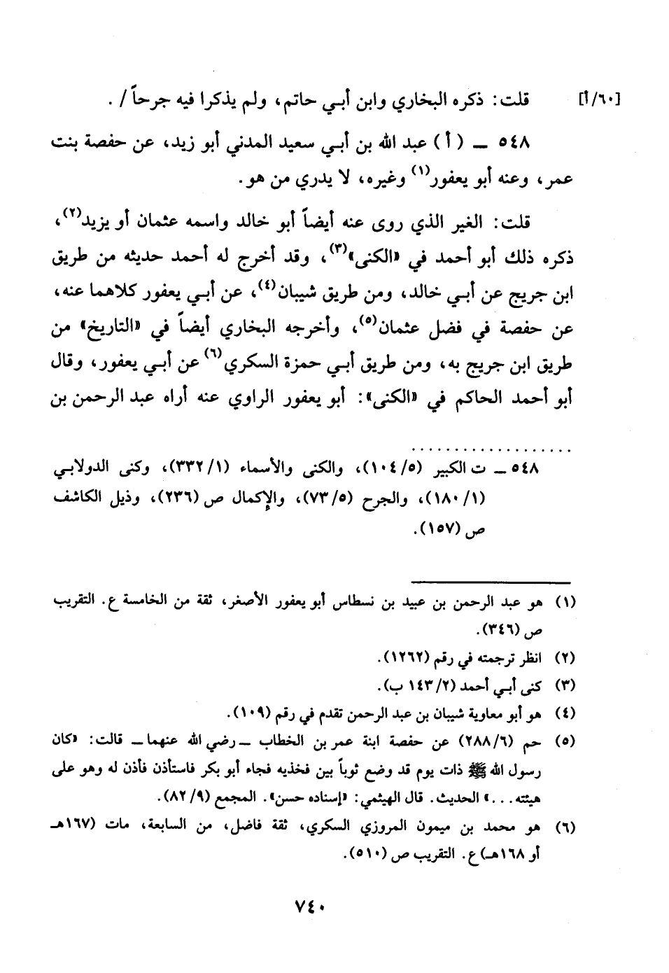 548 - اعبد الله بن أبي سعيد الْمدنِي أَبُو زيد عَن حَفْصَة بنت عمر رضى الله تَعَالَى عَنْهُمَا وَعنهُ أَبُو يَعْفُور وَغَيره لَا يدرى من هُوَ قلت الْغَيْر الَّذِي روى عَنهُ أَيْضا أَبُو خَالِد واسْمه عُثْمَان أَو يزِيد ذكر ذَلِك أَبُو أَحْمد فِي الكنى وَقد أخرج لَهُ أَحْمد حَدِيثه من طَرِيق بن جريج عَن أبي خَالِد وَمن طَرِيق شَيبَان عَن أبي يَعْفُور كِلَاهُمَا عَنهُ عَن حَفْصَة رضى الله تَعَالَى عَنْهَا فِي فضل عُثْمَان رضى الله تَعَالَى عَنهُ وَأخرجه البُخَارِيّ أَيْضا فِي التَّارِيخ من طَرِيق بن جريج بِهِ وَمن طَرِيق أبي حَمْزَة السكرِي عَن أبي يَعْفُور وَقَالَ أَبُو أَحْمد الْحَاكِم فِي الكنى أَبُو يَعْفُور الرَّاوِي عَنهُ أرَاهُ عبد الرَّحْمَن بن