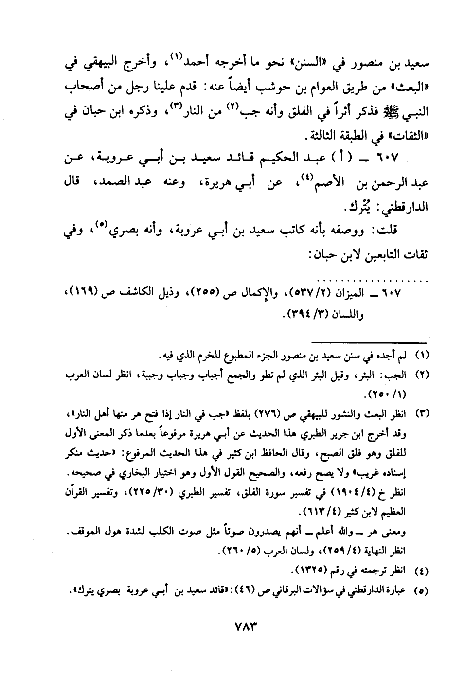 607 - اعبد الْحَكِيم قَائِد سعيد بن أبي عرُوبَة عَن عبد الرَّحْمَن بن الْأَصَم عَن أبي هُرَيْرَة رضى الله تَعَالَى عَنهُ وَعنهُ عبد الصَّمد قَالَ الدَّارَقُطْنِيّ يتْرك قلت وَوَصفه بِأَنَّهُ كَاتب سعيد بن أبي عرُوبَة وَأَنه بَصرِي وَفِي ثِقَات التَّابِعين لِابْنِ حبَان