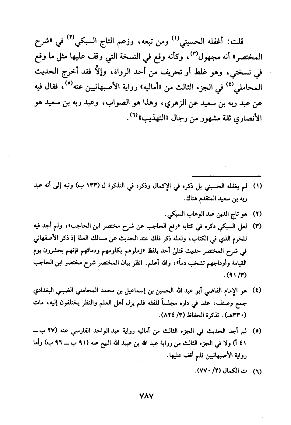 قلت اغفله الْحُسَيْنِي وَمن تبعه وَزعم التَّاج السُّبْكِيّ فِي شرح الْمُخْتَصر أَنه مَجْهُول وَكَأَنَّهُ وَقع فِي النُّسْخَة الَّتِي وقف عَلَيْهَا مثل مَا وَقع فِي نُسْخَتي وَهُوَ غلط أَو تَحْرِيف من أحد الروَاة وَإِلَّا فقد اخْرُج الحَدِيث الْمحَامِلِي فِي الْجُزْء الثَّالِث من أَمَالِيهِ رِوَايَة الأصبهانيين عَنهُ فَقَالَ فِيهِ عَن عبد ربه بن سعيد عَن الزُّهْرِيّ وَهَذَا هُوَ الصَّوَاب وَعبد ربه بن سعيد هُوَ الْأنْصَارِيّ ثِقَة مَشْهُور من رجال التَّهْذِيب