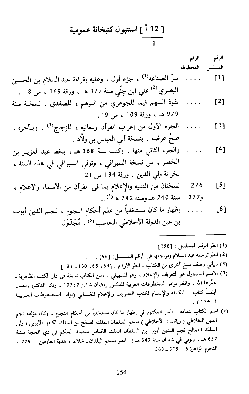 [5] ... 276 ... نسختان من التنبيه والإعلام بما في القرآن من الأسماء والأعلام، و 277 سنة 740 هـ وسنة 742 هـ (¬4).