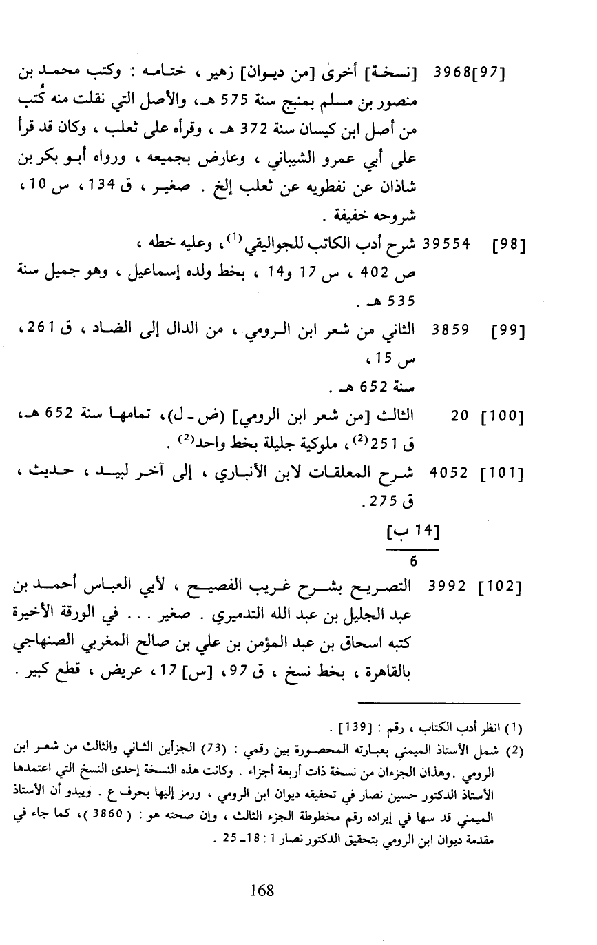 [99] ... 3859 ... الثاني من شعر ابن الرومي، من الدال إلى الضاد، ق 261، س 15، سنة 652 هـ.