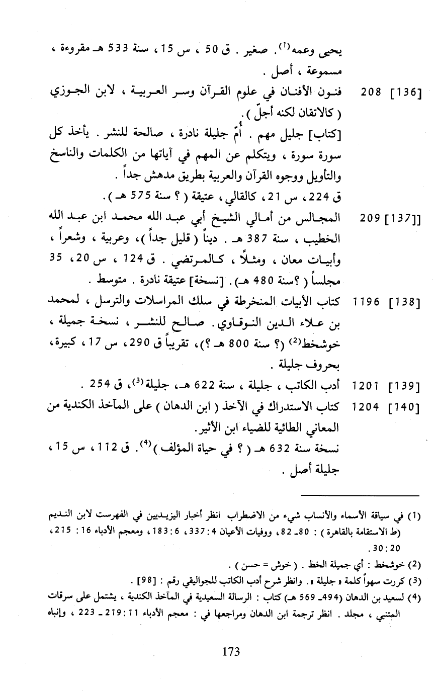 [136] ... 108 ... فنون الأفنان في علوم القرآن وسر العربية، لابن الجوزي (كالإتقان لكنه أجلّ).