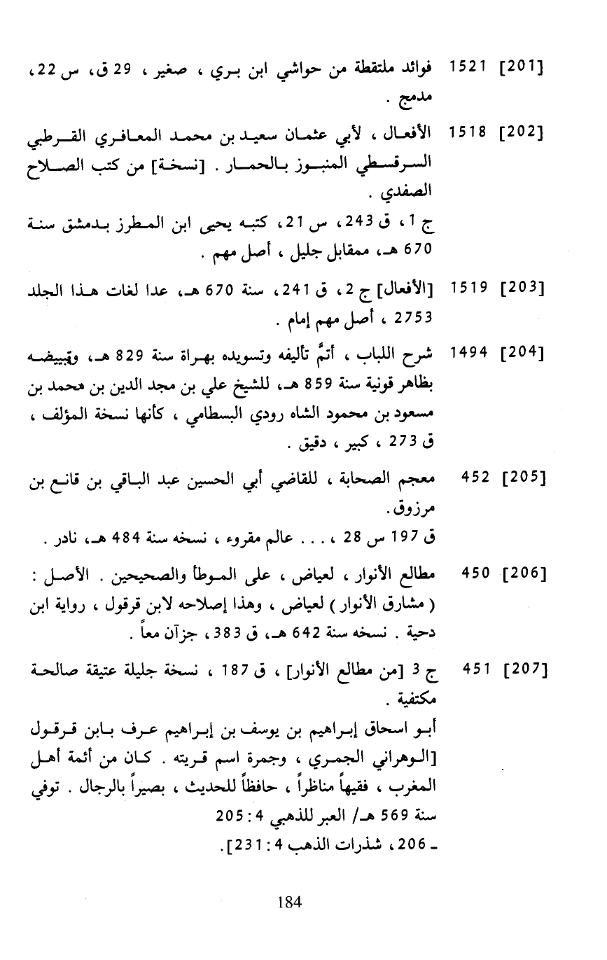 [203] ... 1519 ... [الأفعال] ج 2، ق 241، سنة 670 هـ، عدا لغات هذا الجلد 2753، أصل مهم إمام.
