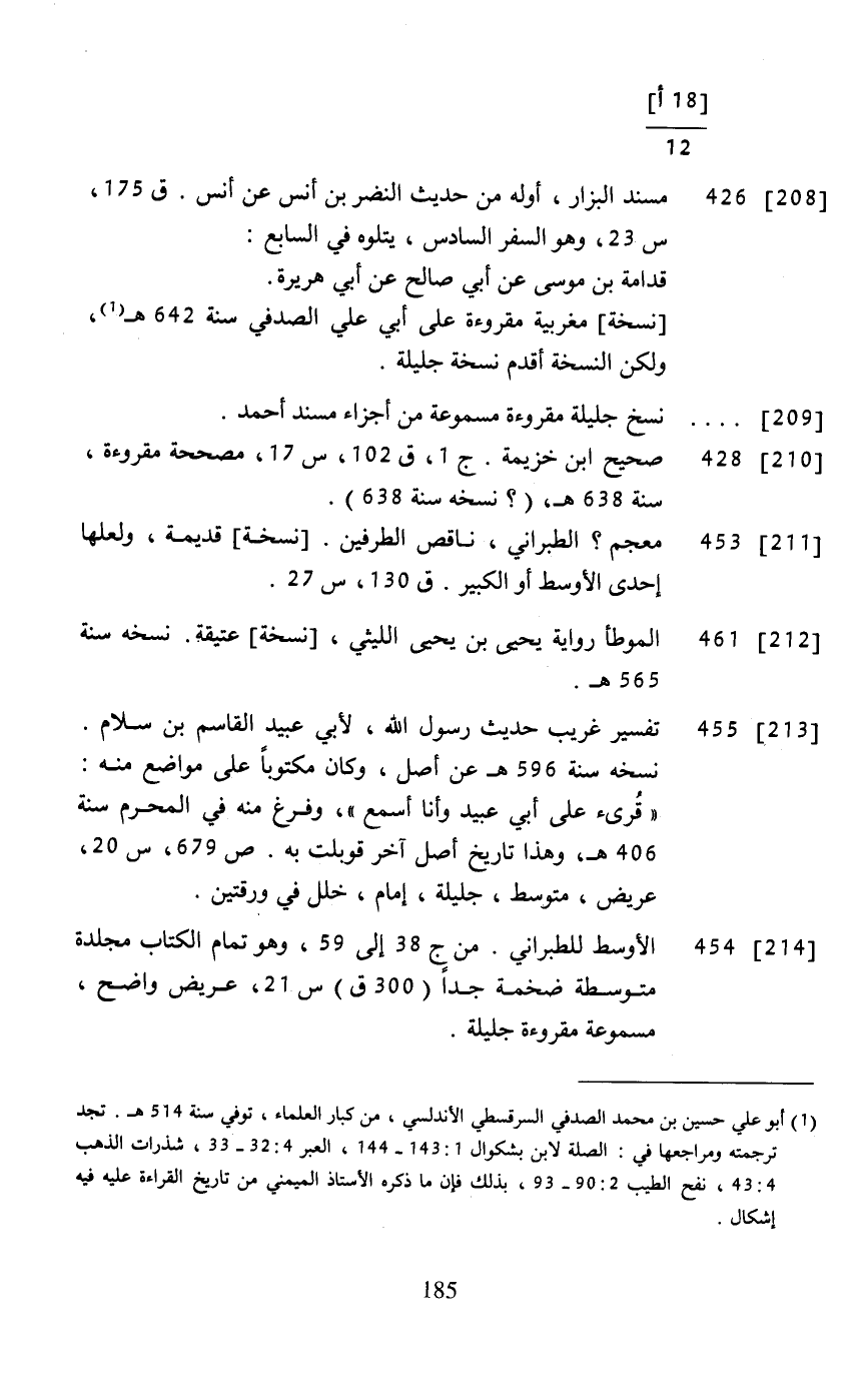 [208] ... 426 ... مسند البزار، أوله من حديث النضر بن أنس عن أنس. ق 175، س 23، وهو السفر السادس، يتلوه في السابع: