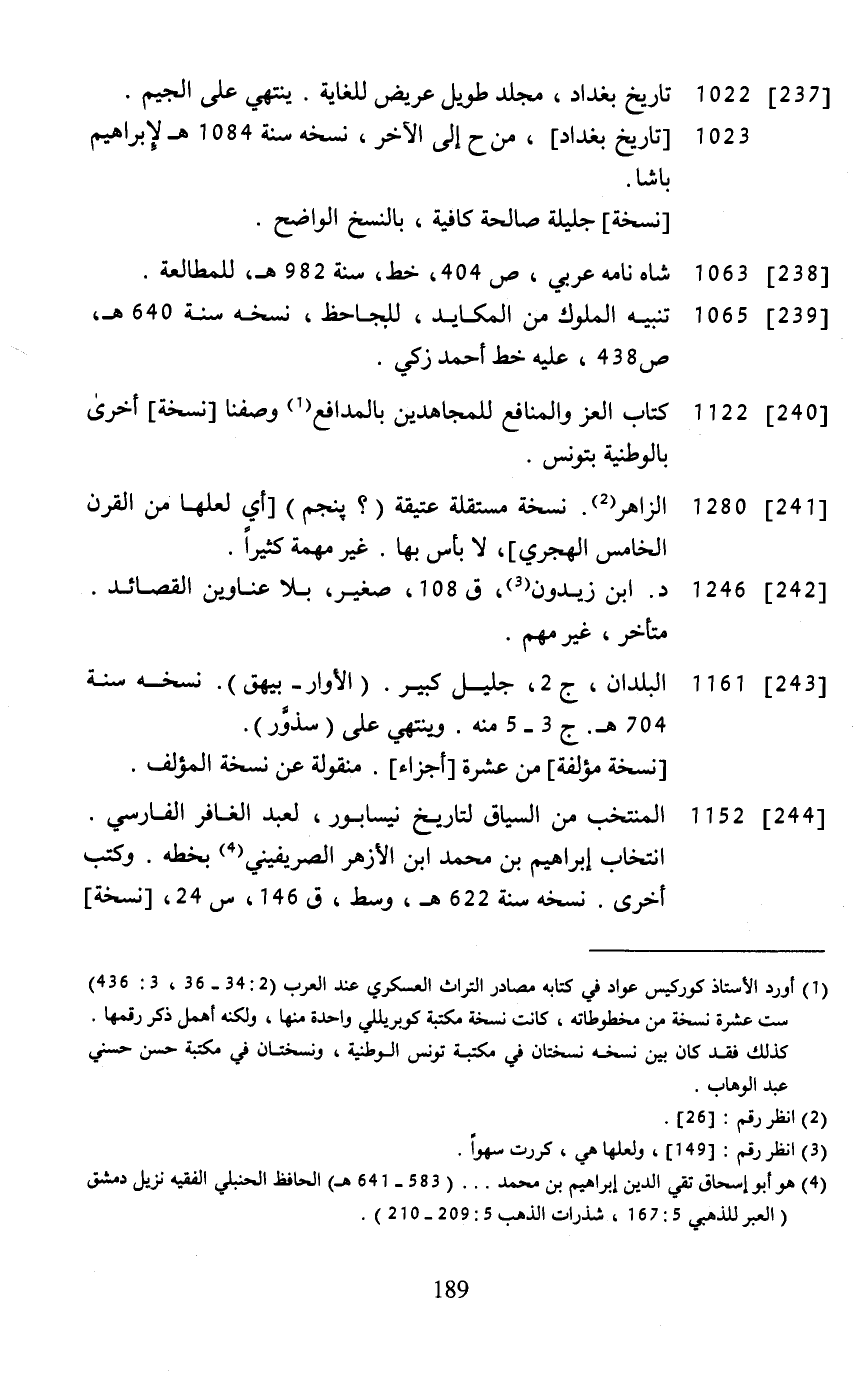 [237] ... 1022 ... تاريخ بغداد، مجلد طويل عريض للغاية. ينتهي على الجيم.