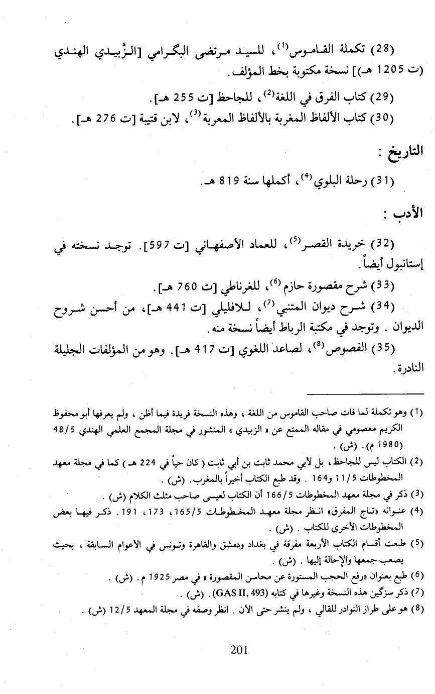 (¬5) طبعت أقسام الكتاب الأربعة مفرقة في بغداد ودمشق والقاهرة وتونس في الأعوام السابقة، بحيث يصعب جمعها والإِحالة إليها. (ش).