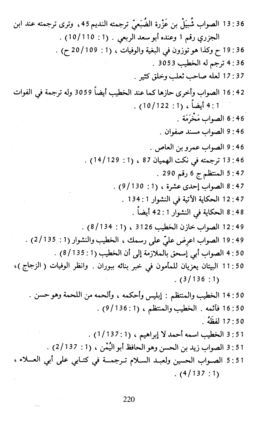 50: 4 الصواب أبي إسحاق بالملازمة إلى أن الخطيب (1: 135/ 8).