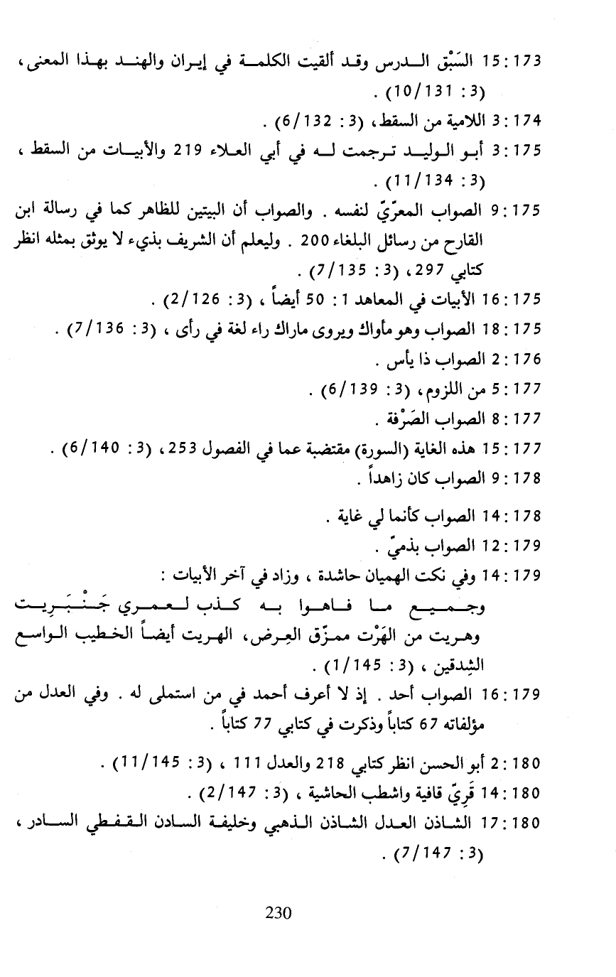 175: 9 الصواب المعرّيّ لنفسه. والصواب أن البيتين للظاهر كما في رسالة ابن القارح من رسائل البلغاء 200. وليعلم أن الشريف بذيء لا يوثق بمثله انظر كتابي 297، (3: 135/ 7).