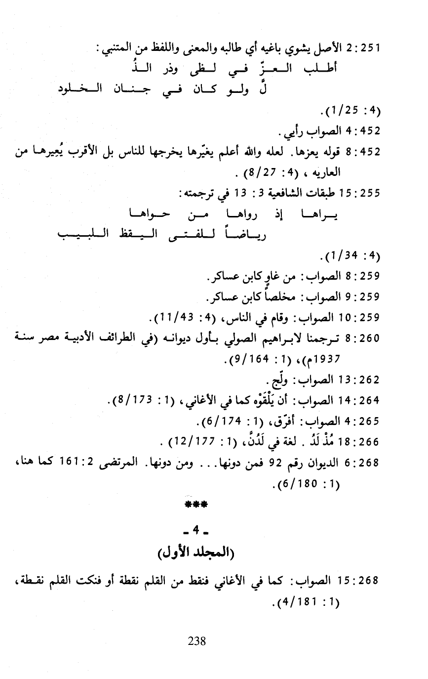 260: 8 ترجمنا لإبراهيم الصولي بأول ديوانه (في الطرائف الأدبية مصر سنة 1937 م) , (1: 164/ 9).