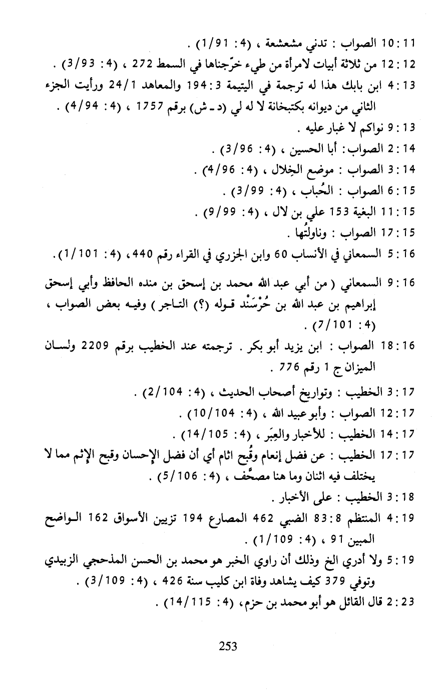 19: 4 ... المنتظم 8: 83 الضبي 462 المصارع 194 تزيين الأسواق 162 الواضح المبين 91، (4: 109/ 1).