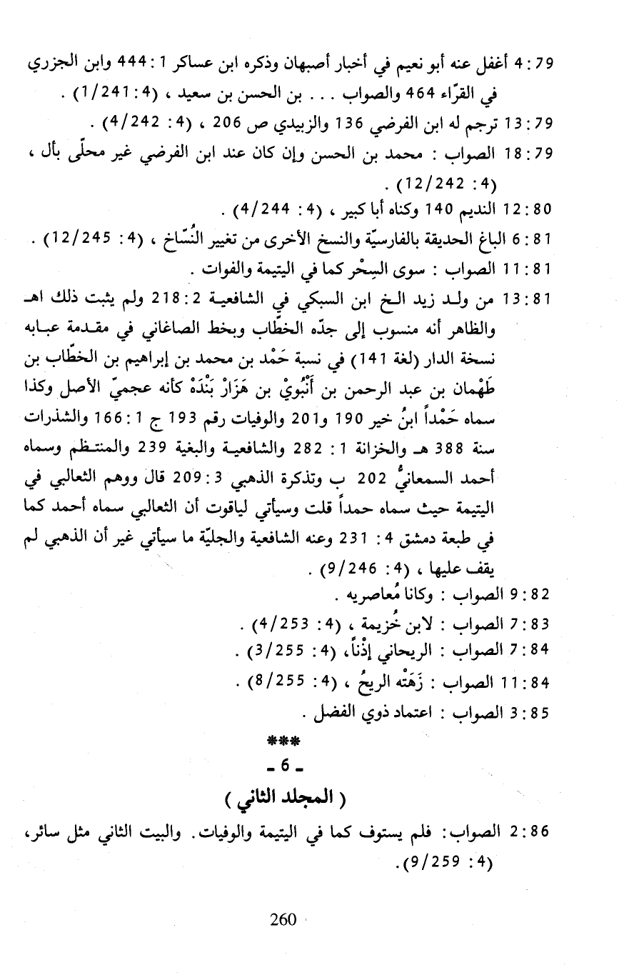 79: 4 ... أغفل عنه أبو نعيم في أخبار أصبهان وذكره ابن عساكر 1: 444 وابن الجزري في القرّاء 464 والصواب ... بن الحسن بن سعيد، (4: 241/ 1).