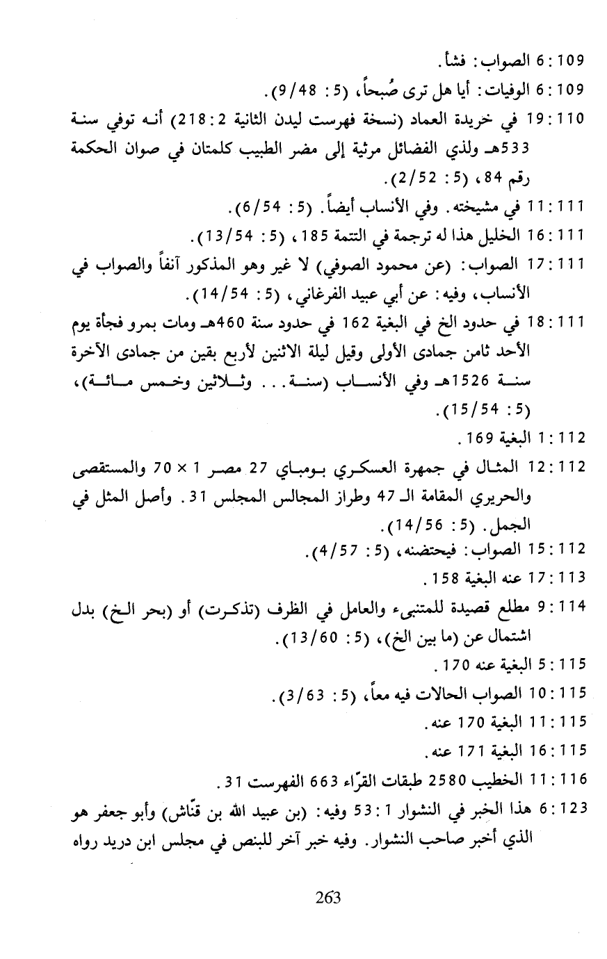 111: 17 ... الصواب: (عن محمود الصوفي) لا غير وهو المذكور آنفًا والصواب في الأنساب، وفيه: عن أبي عبيد الفرغاني، (5: 54/ 14).