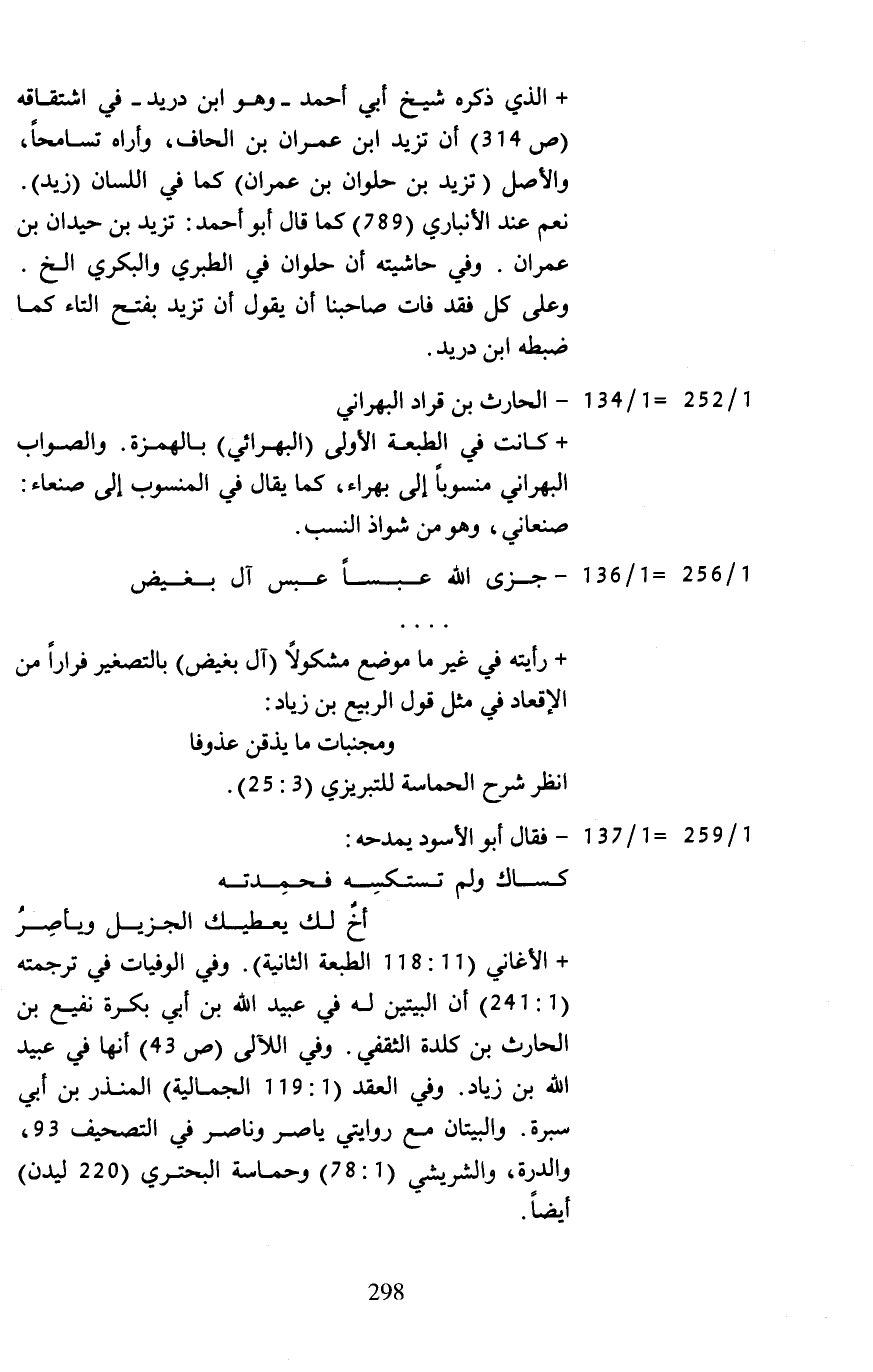 + الَّذي ذكره شيخ أبي أحمد -وهو ابن دريد- في اشتقاقه (ص 314) أن تزيد ابن عمران بن الحاف، وأراه تسامحًا، والأصل (تزيد بن حلوان بن عمران) كما في اللسان (زيد). نعم عند الأنباري (789) كما قال أبو أحمد: تزيد بن حيدان بن عمران. وفي حاشيته أن حلوان في الطبري والبكري الخ. وعلى كل فقد فات صاحبنا أن يقول أن تزيد بفتح التاء كما ضبطه ابن دريد.