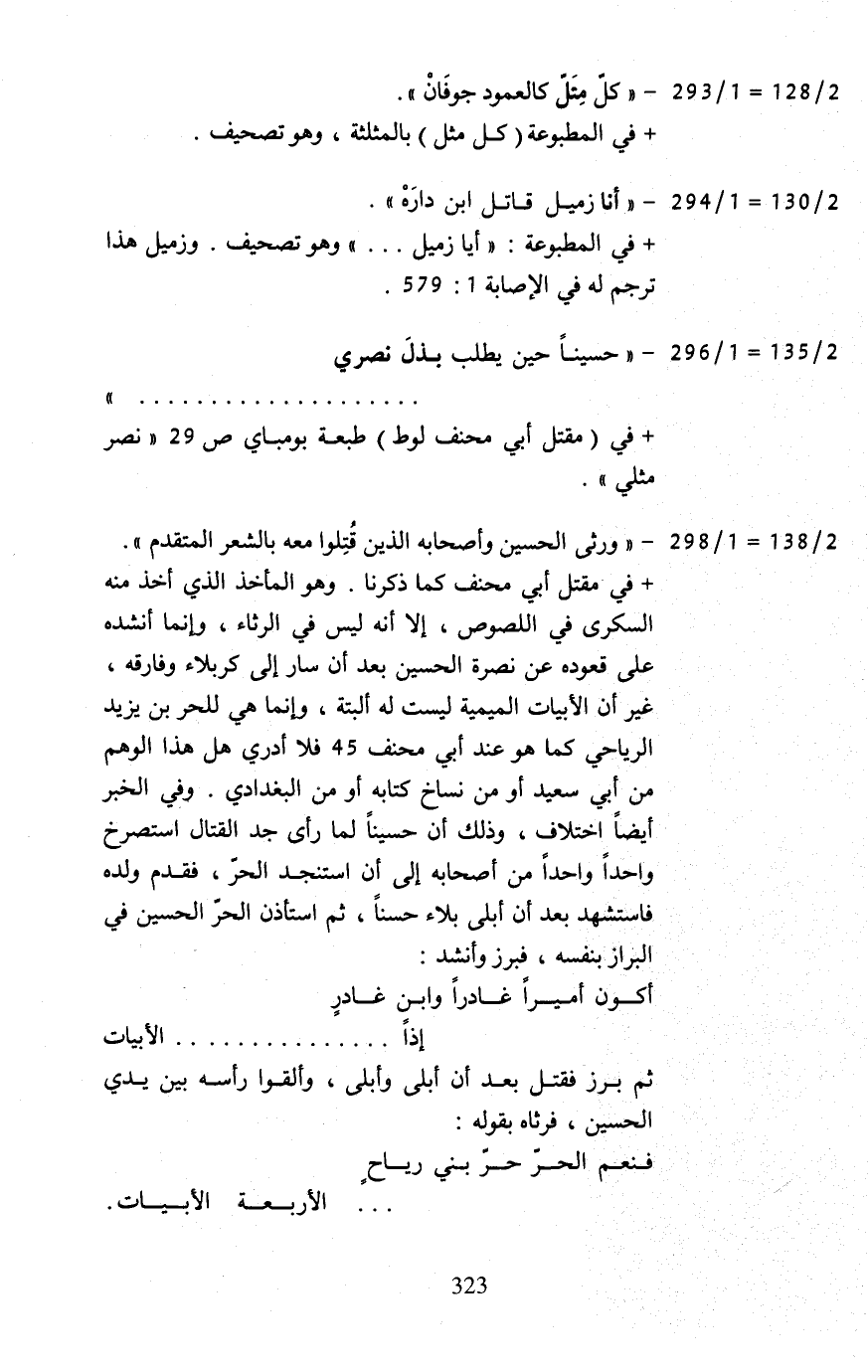 2/ 138 = 1/ 298 - "ورثى الحسين وأصحابه الذين قُتِلوا معه بالشعر المتقدم".