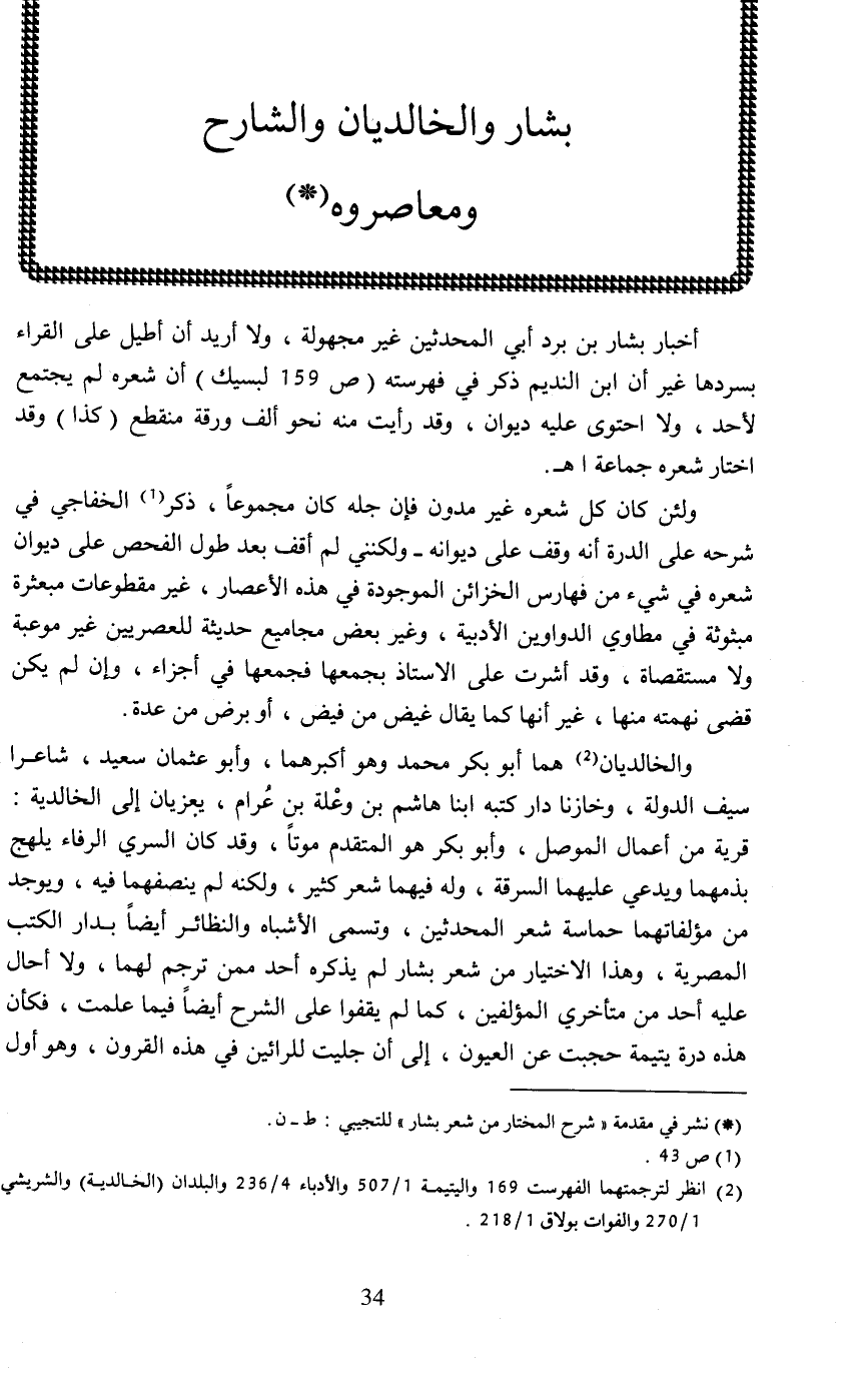 بشار والخالديان والشارح ومعاصروه (*)