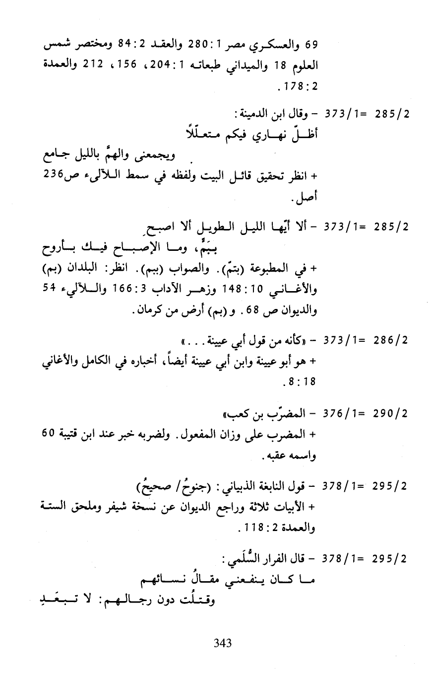 69 والعسكري مصر 1: 280 والعقد 2: 84 ومختصر شمس العلوم 18 والميداني طبعاته 1: 204، 156، 212 والعمدة 2: 178.