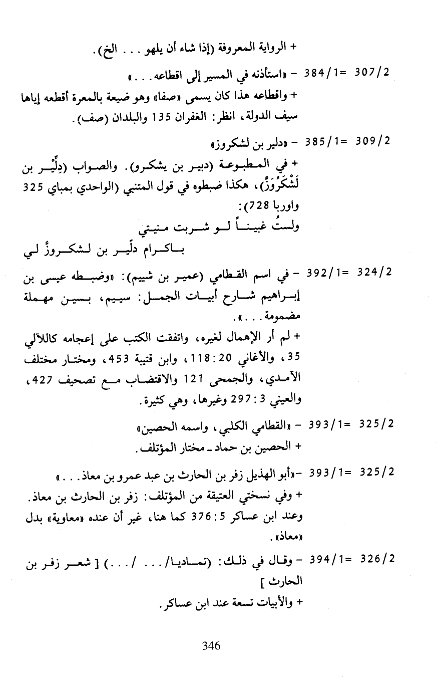 2/ 325 = 1/ 393 - "أبو الهذيل زفر بن الحارث بن عبد عمرو بن معاذ. . ."