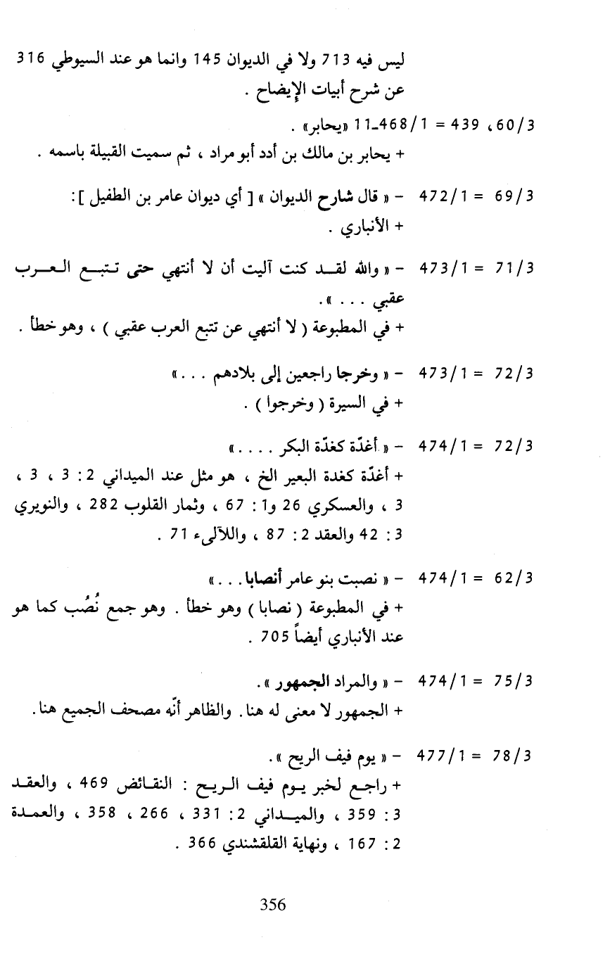 3/ 69= 1/ 427 - "قال شارح الديوان" [أي ديوان عامر بن الطفيل]: