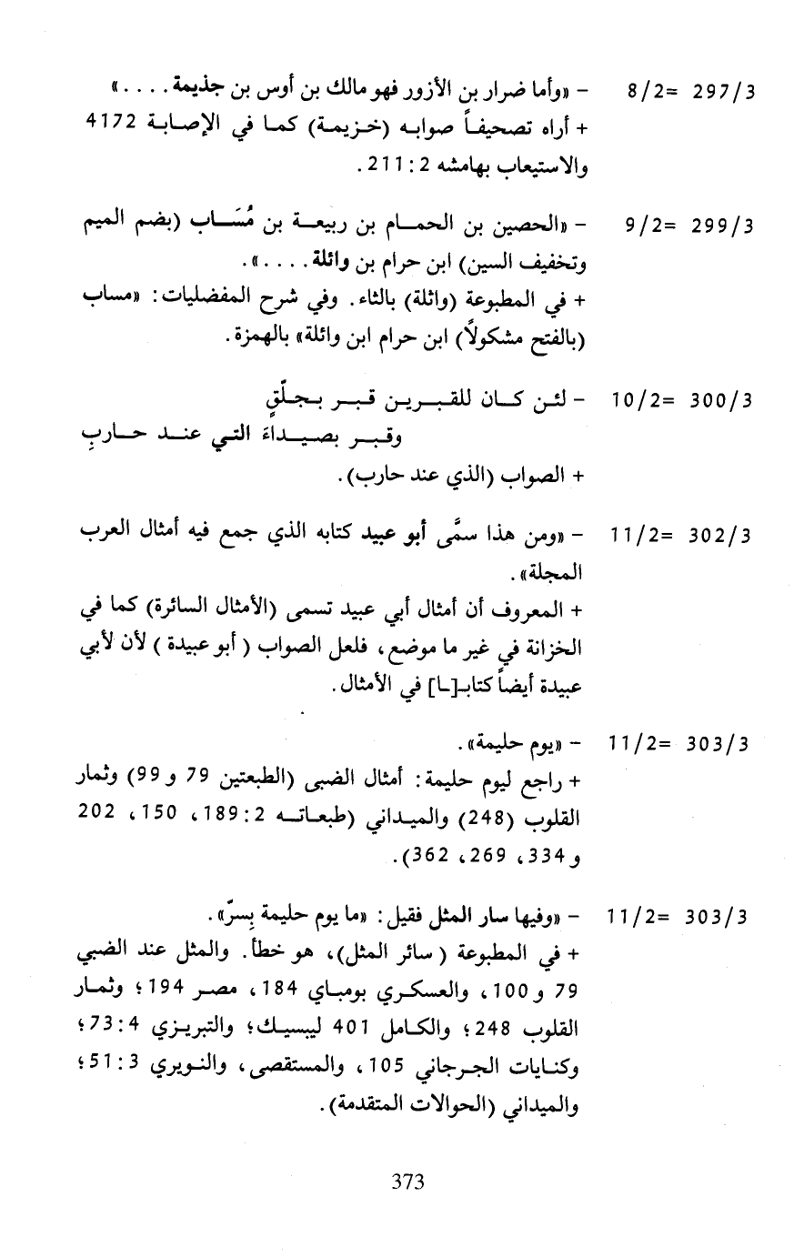3/ 297= 2/ 8 - "وأما ضرار بن الأزور فهو مالك بن أوس بن جذيمة ........ "