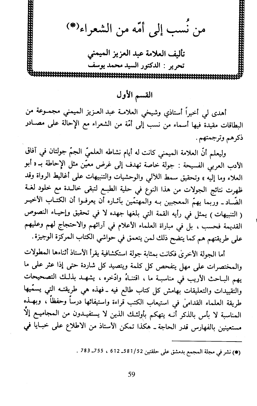 (*) نشر في مجلة المجمع بدمشق على حلقتين 52/ 581 - 612، 755 - 783.