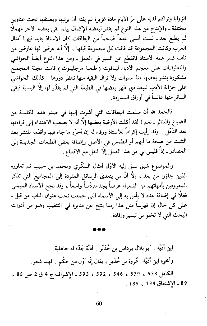 فالحمد لله أن سلمت البطاقات التي أشرت إليها في صدر هذه الكلمة من الضياع والتناثر- نعم! لقد أكلت الأرضة بعضها إلَّا أنَّه لا يصعب الاهتداء إلى قراءتها بعد التأمل. وقد رأيت إكرامًا للأستاذ ووفاء له إن أحرر ما جاء فيها وأقدّمه للنشر بعد التثبت من صحة ما أبهم أو انطمس في الأصل وإضافة بعض الطبعات الجديدة إلى المصادر- إذًا فليس لي من هذا العمل إلَّا النقل مع الاقتناع.