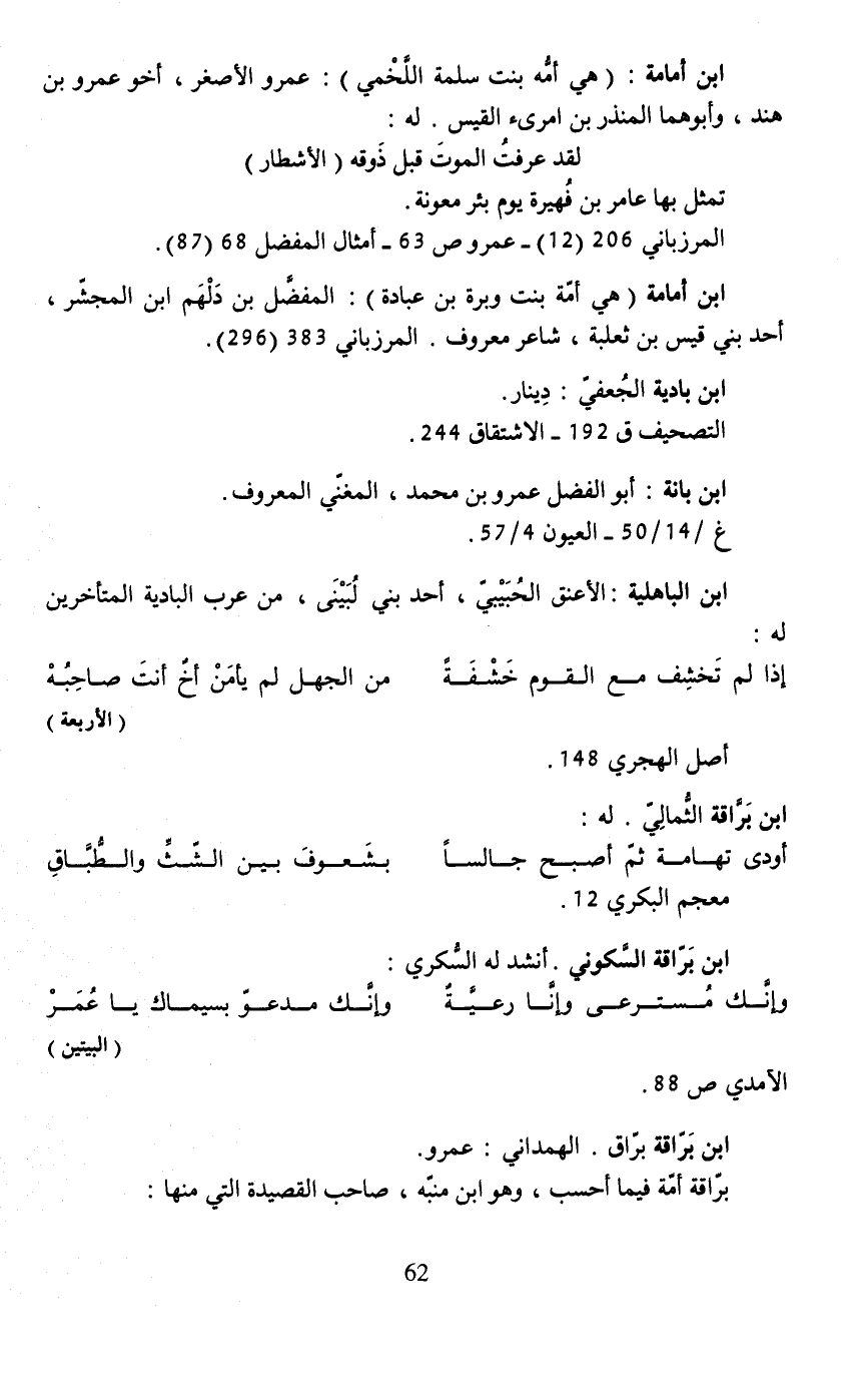 ابن أمامة (هي أمَّة بنت وبرة بن عبادة): المفضَّل بن دَلْهَم ابن المجشَّر، أحد بني قيس بن ثعلبة، شاعر معروف. المرزباني 283 (296).